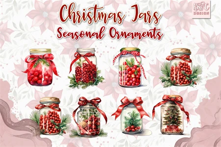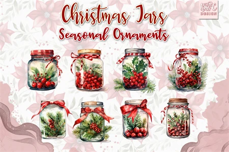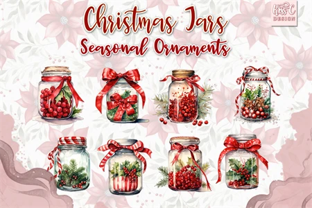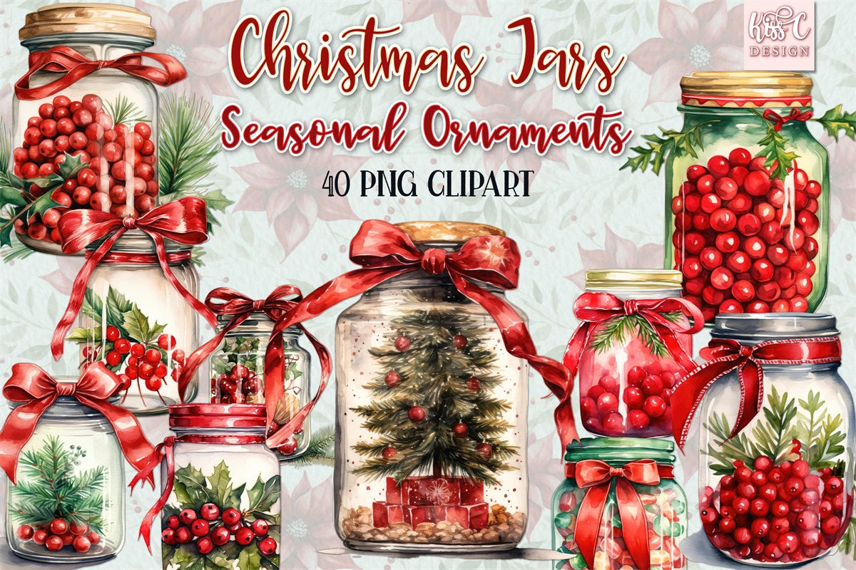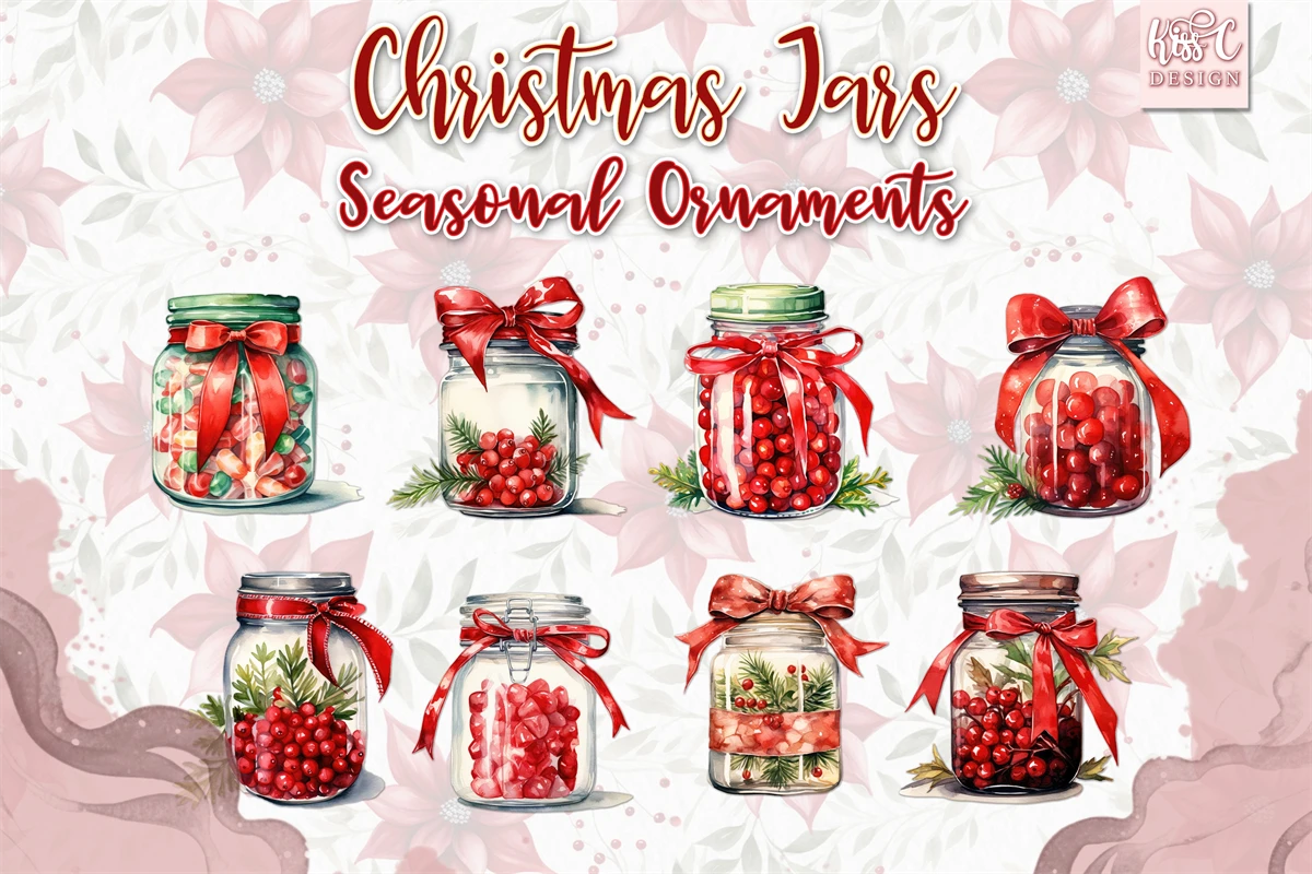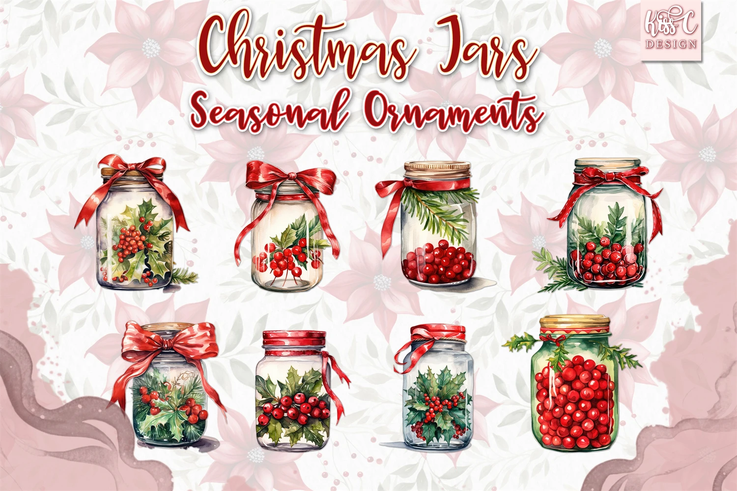 Christmas Jars Seasonal Decoration Illustration Clipart.