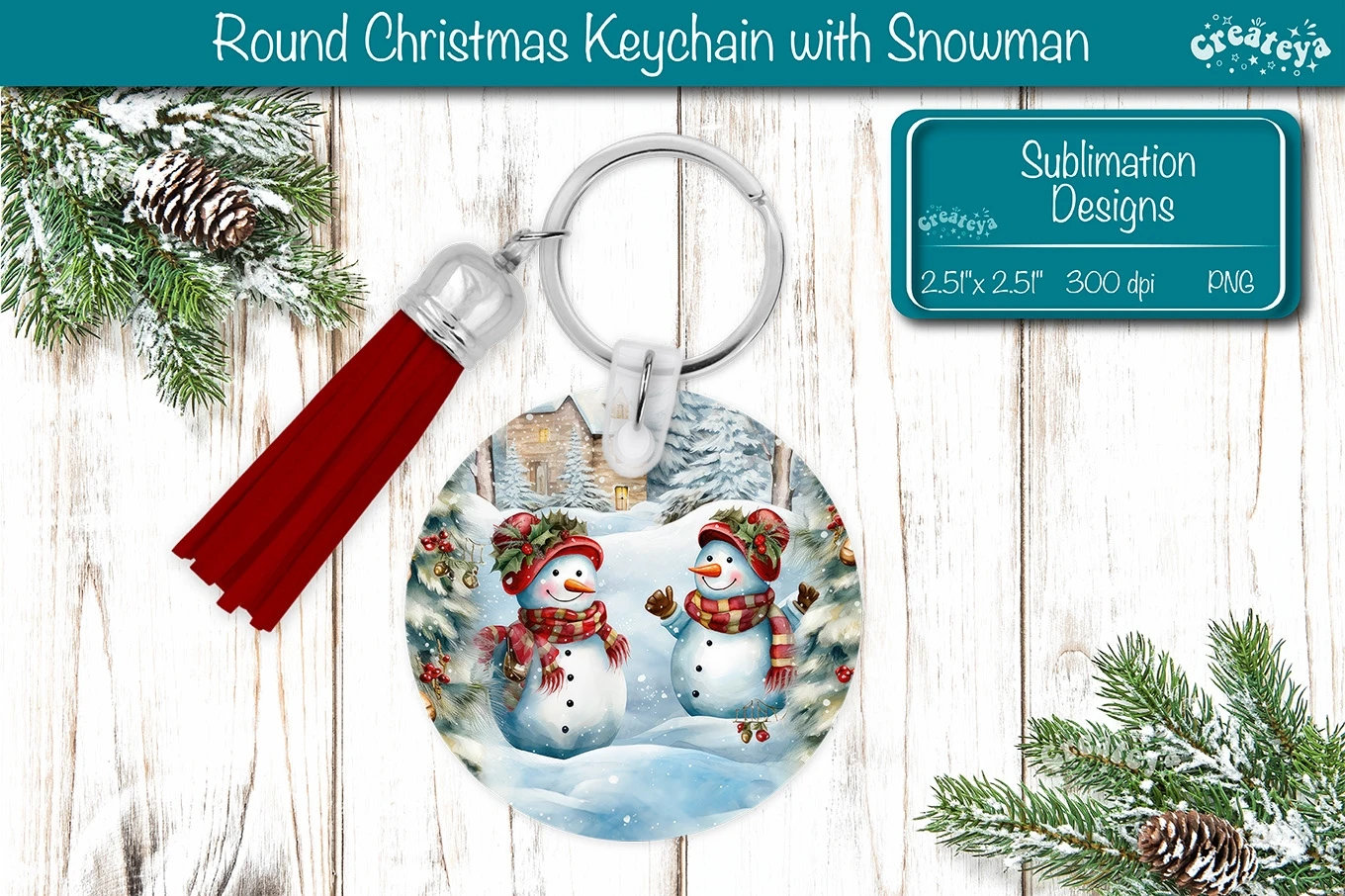 Round Christmas keychain sublimation design with a cute Watercolor Snowman Keychain PNG. Christmas Sublimation Round keychain with adorable snowmen, vibrant colors, and lasting memories. Perfect as a delightful gift.