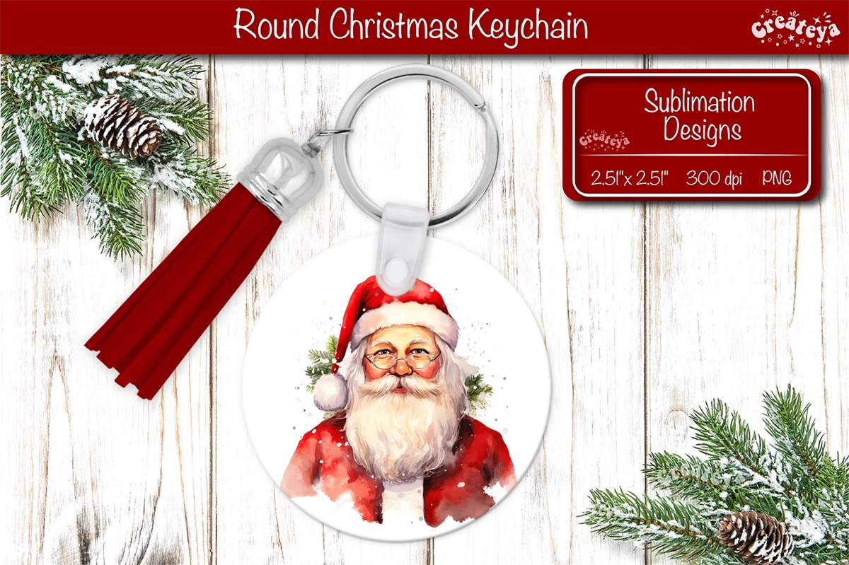 Round Christmas keychain sublimation with a Christmas Santa Keychain PNG. Christmas Sublimation Round keychain Perfect as a delightful gift.