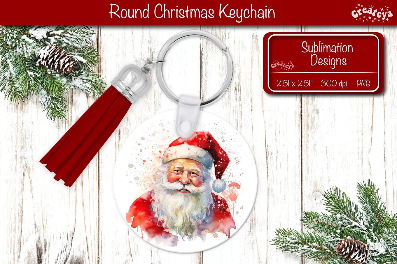 Round Christmas keychain sublimation with a Christmas Santa Keychain PNG. Christmas Sublimation Round keychain Perfect as a delightful gift.