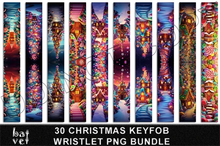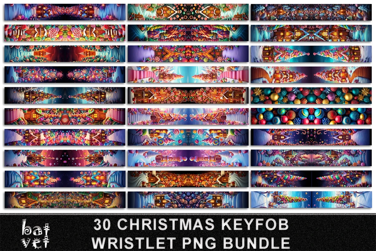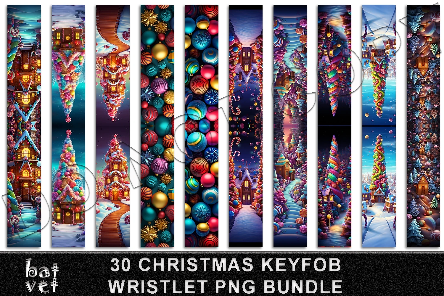 Christmas Keychain Sublimation Bundle / Xmas Key Fob Wristlet Design / 30 PNG Files