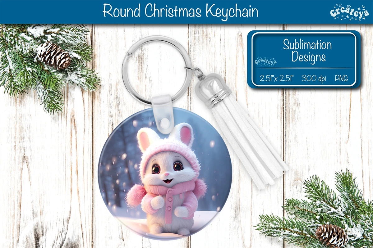 Christmas keychain sublimation designs with cute Christmas Baby Animals print Round Keychain PNG. Christmas Sublimation Round Keychain Perfect as a delightful gift.