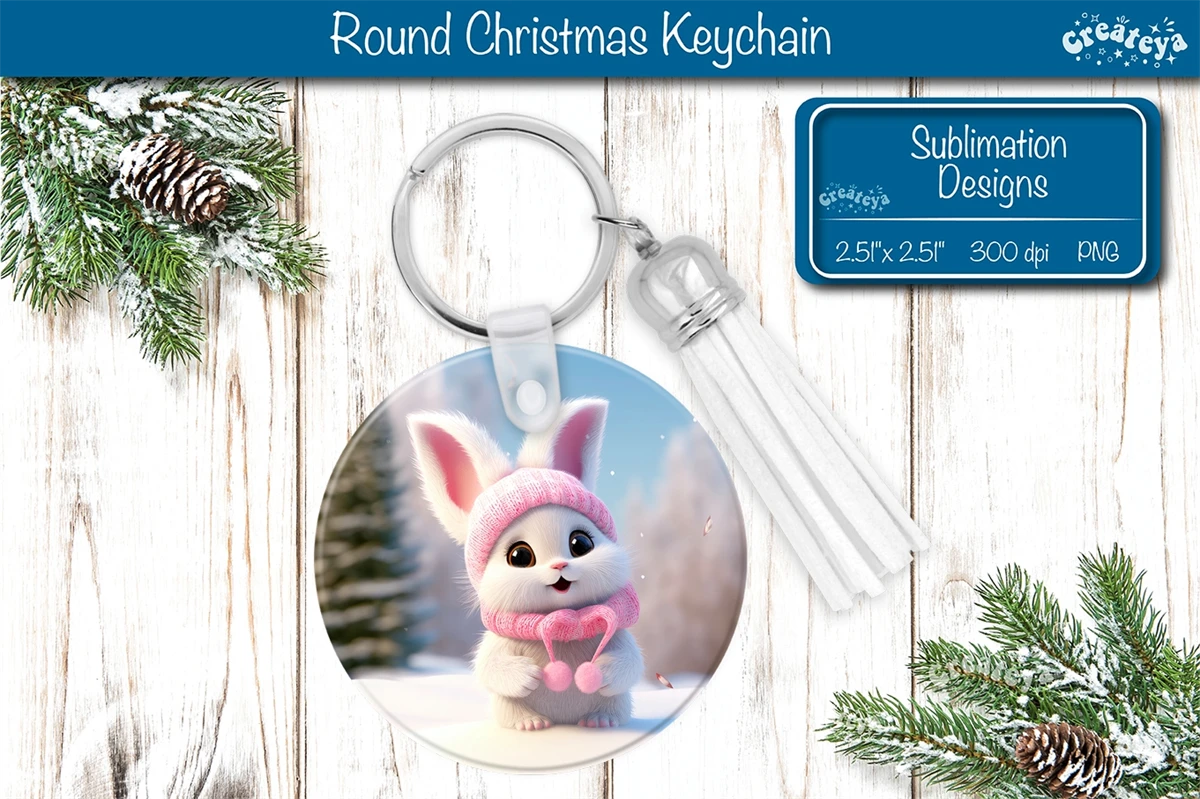 Christmas keychain sublimation designs with cute Christmas Baby Animals print Round Keychain PNG. Christmas Sublimation Round Keychain Perfect as a delightful gift.