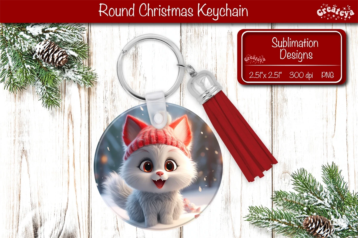 Christmas keychain sublimation designs with cute Christmas Baby Animals print Round Keychain PNG. Christmas Sublimation Round Keychain Perfect as a delightful gift.
