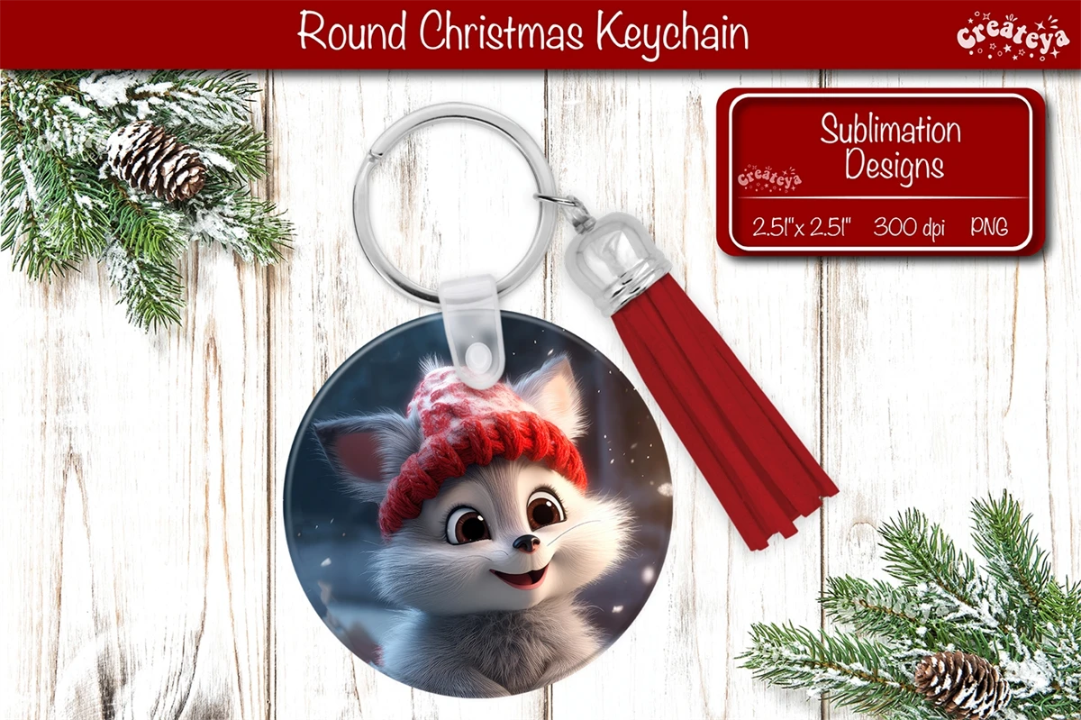 Christmas keychain sublimation designs with cute Christmas Baby Animals print Round Keychain PNG. Christmas Sublimation Round Keychain Perfect as a delightful gift.