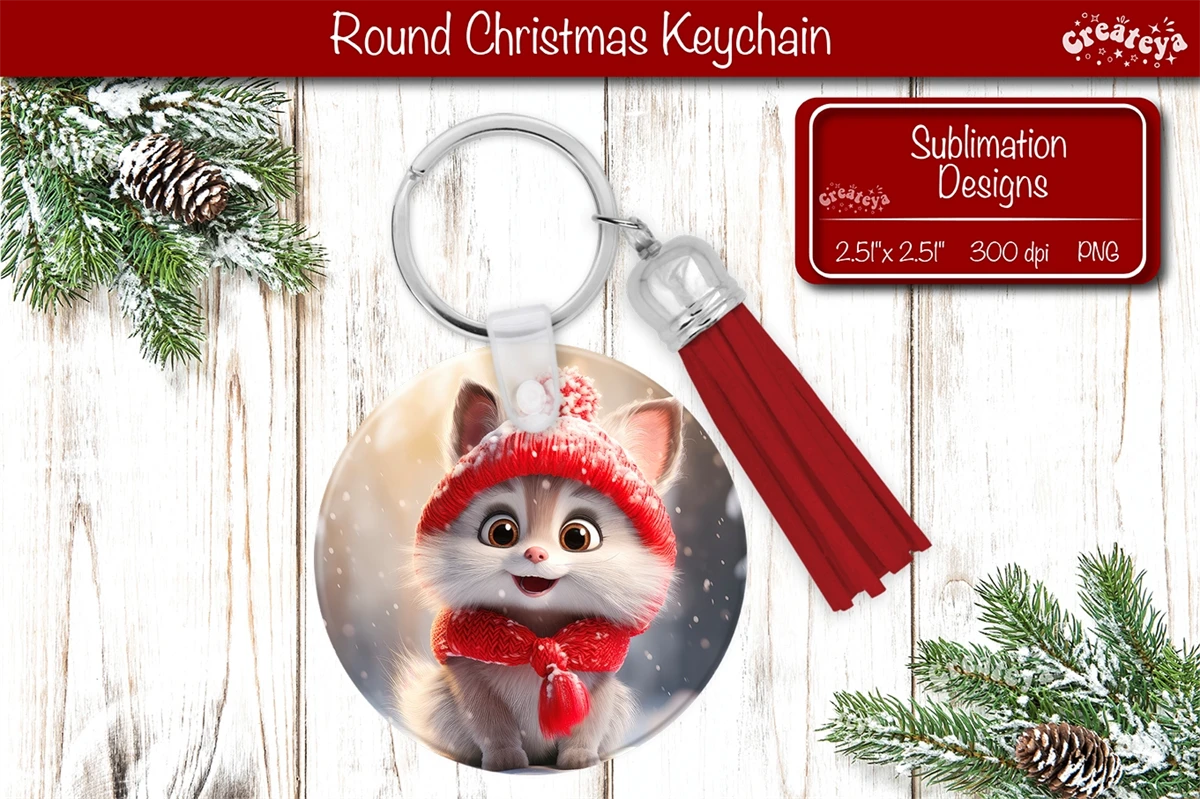Christmas keychain sublimation designs with cute Christmas Baby Animals print Round Keychain PNG. Christmas Sublimation Round Keychain Perfect as a delightful gift.