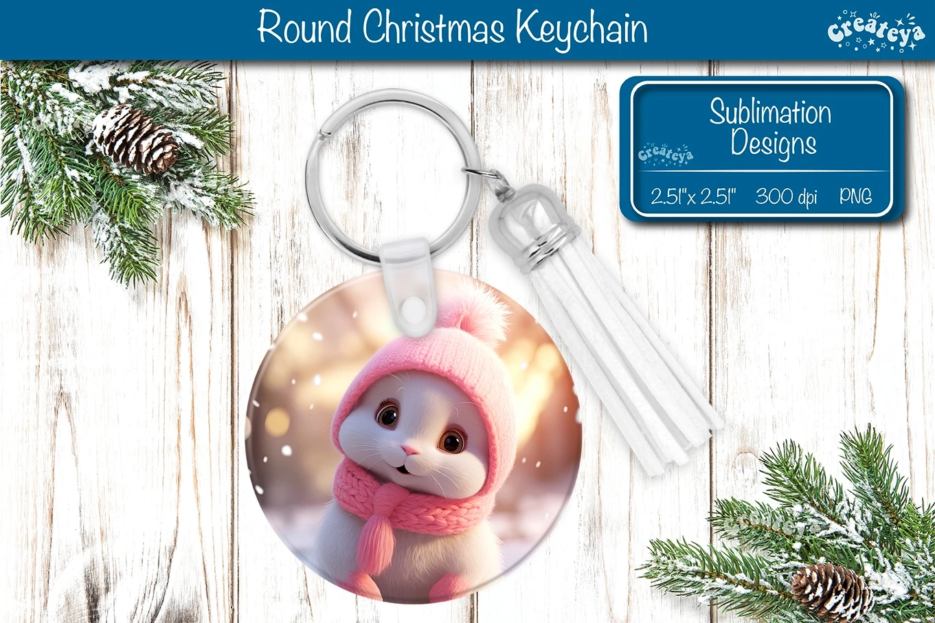 Christmas keychain sublimation designs with cute Christmas Baby Animals print Round Keychain PNG. Christmas Sublimation Round Keychain Perfect as a delightful gift.