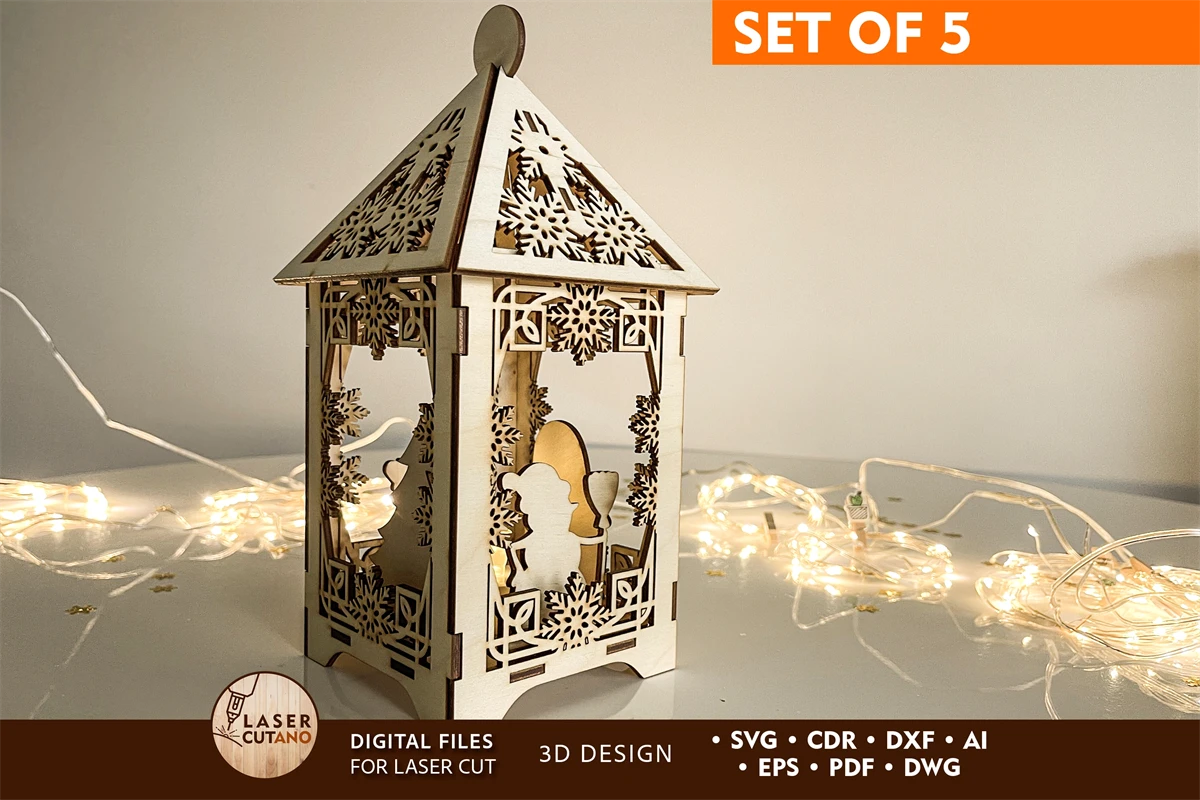 CHRISTMAS LANTERN Digital multilayer layout files are specially prepared for the laser cut, CNC router machine and other cutting machines.