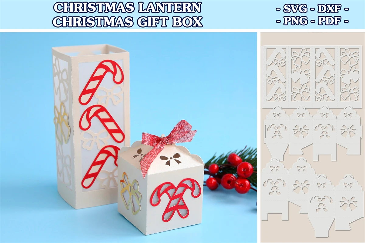 The lantern template and gift box template are compatible with Silhouette, Cricut, Brother ScanNCut cutting machines.