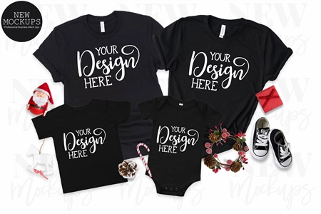 Gildan 2400 Black Christmas T-Shirt Mockup Long Sleeve Mockup, High Quality Mockups on Faded beige wooden background