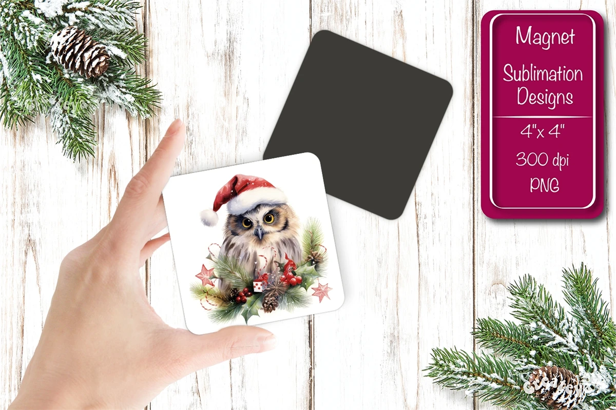 Square Christmas Magnet PNG design with a cute Watercolor Baby Animals PNG. These standard square magnets 4'' x 4'' charming magnets make for fantastic holiday gifts. Share the joy of the season with friends and family by sending them a piece of winter enchantment. Your fridge will thank you, and so will your heart!