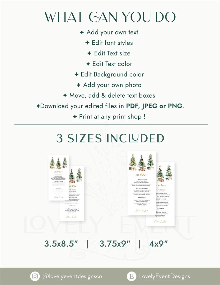 Christmas Menu Card, Holiday Menu Template, Christmas Menu,