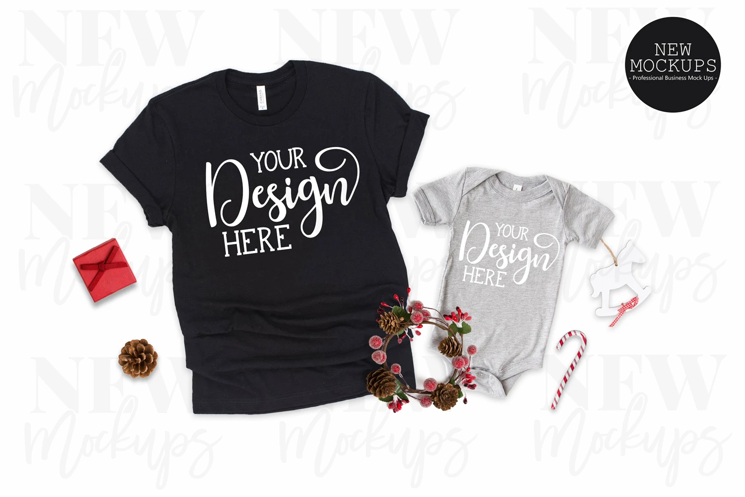 Bella canvas 3001 Black T-Shirt, 100B Athletic Heather Bodysuit mockup!