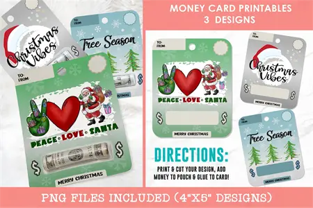 Christmas Money Card PNG, Peace Love Santa, Stocking Stuffer