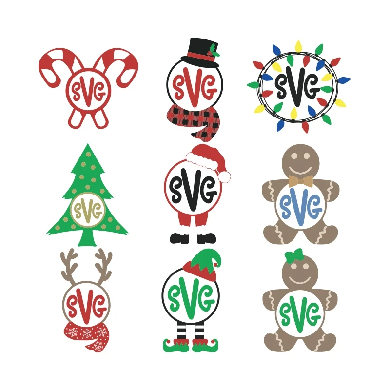 Christmas monogram Svg bundle, Elf Svg, Gingerbread Svg
