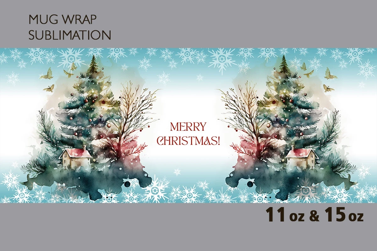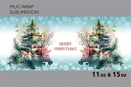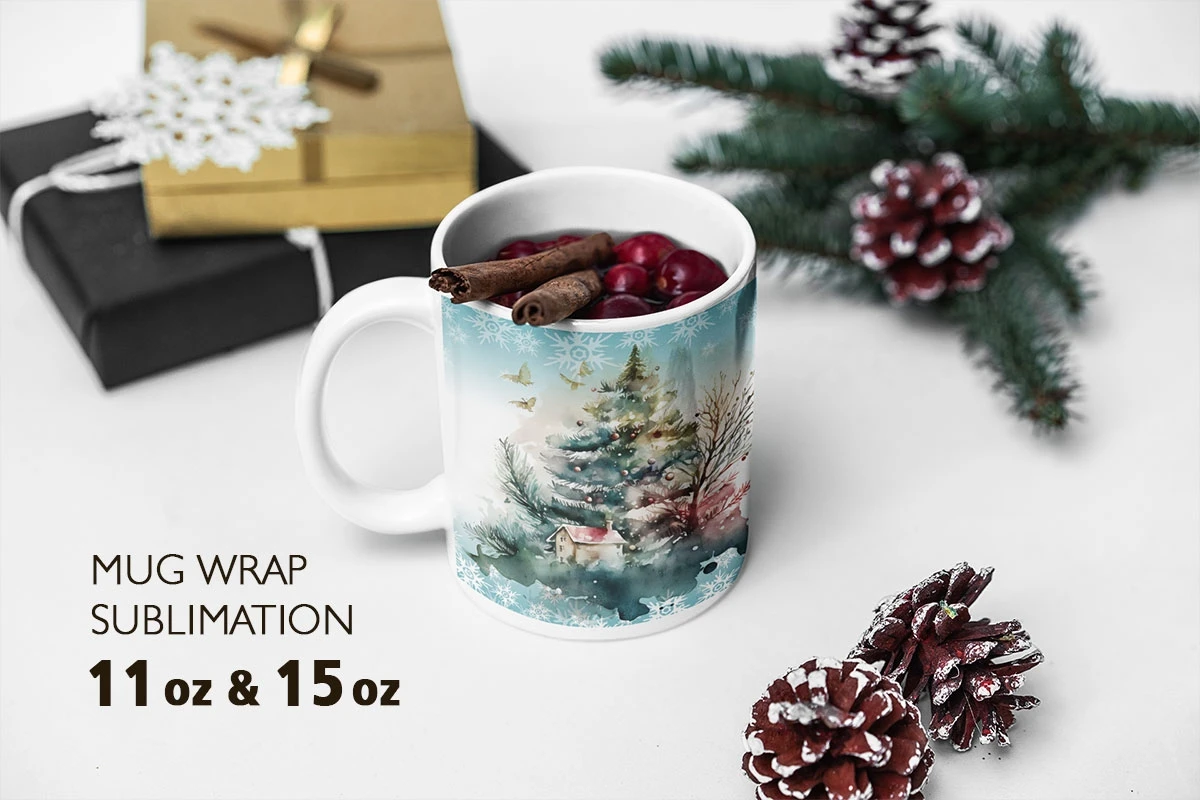 Cute Watercolor Christmas Tree, mug wrap sublimation design for 11 oz and 15 oz.