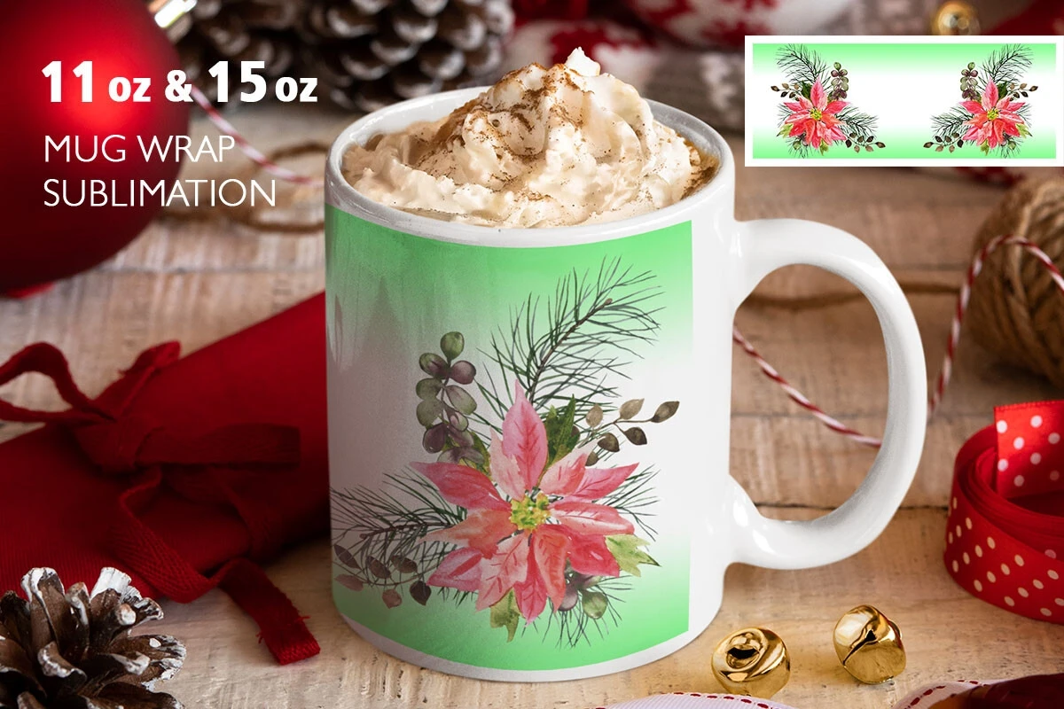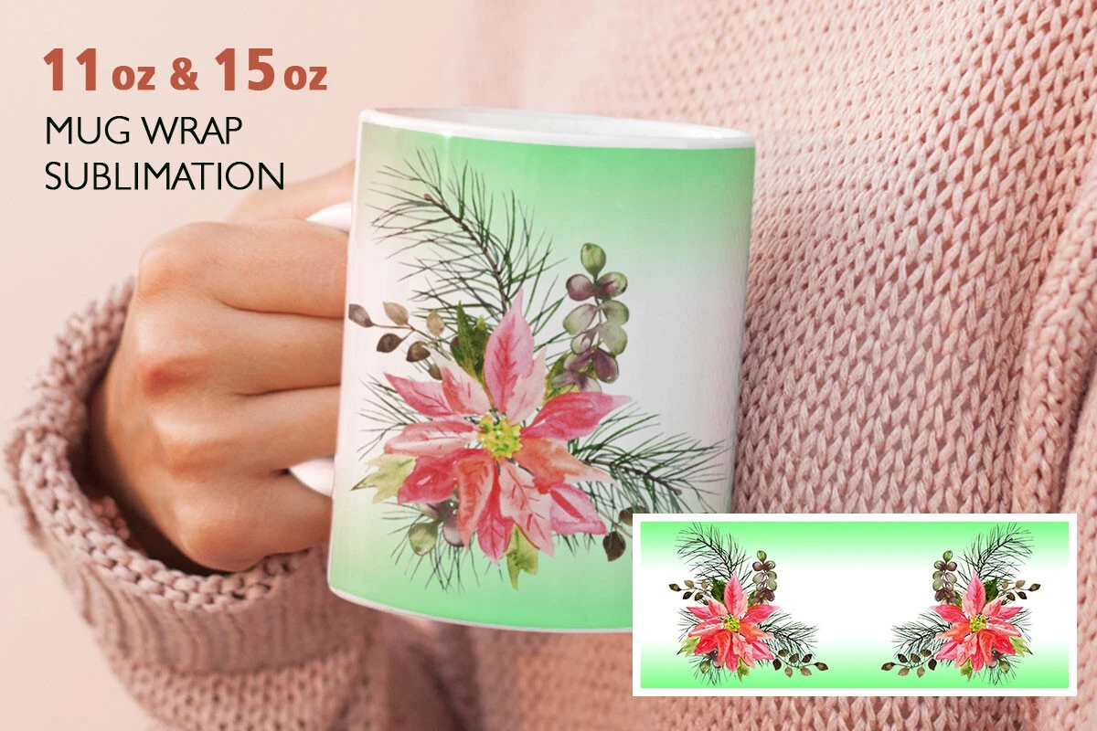Watercolor hand painted Christmas sublimation design for 11 oz and 15 oz.