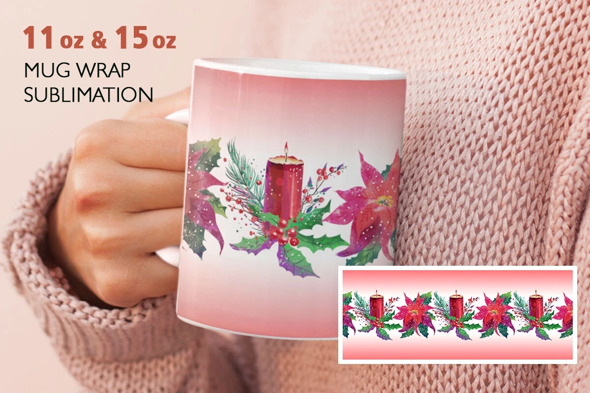 Watercolor digitally hand painted Christmas sublimation design for 11 oz and 15 oz.
