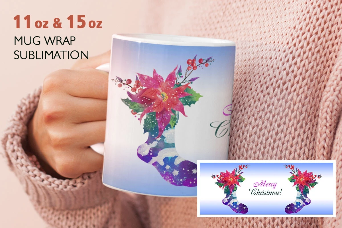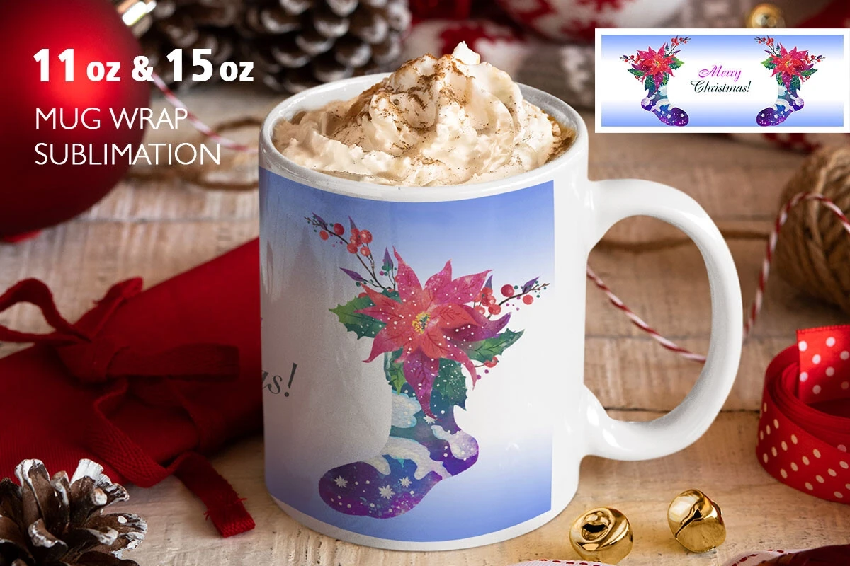 Watercolor digitally hand painted Christmas sublimation design for 11 oz and 15 oz.