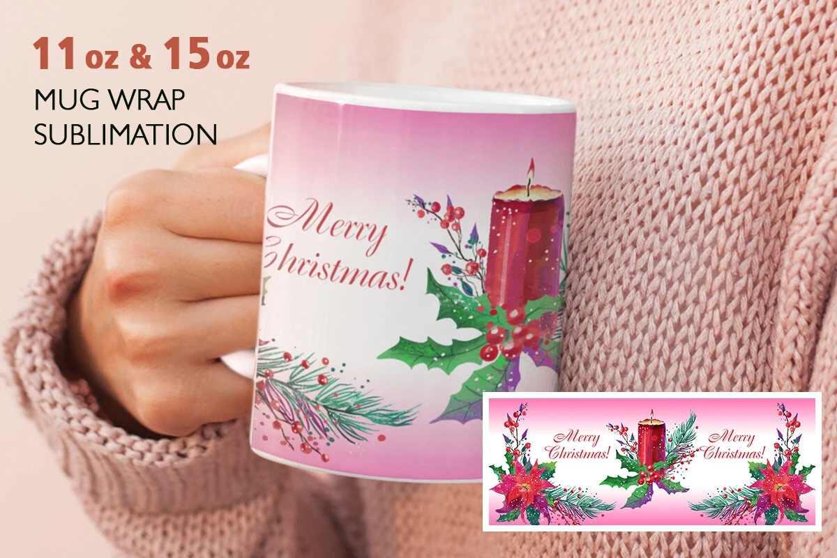 Watercolor digitally hand painted Christmas sublimation design for 11 oz and 15 oz.
