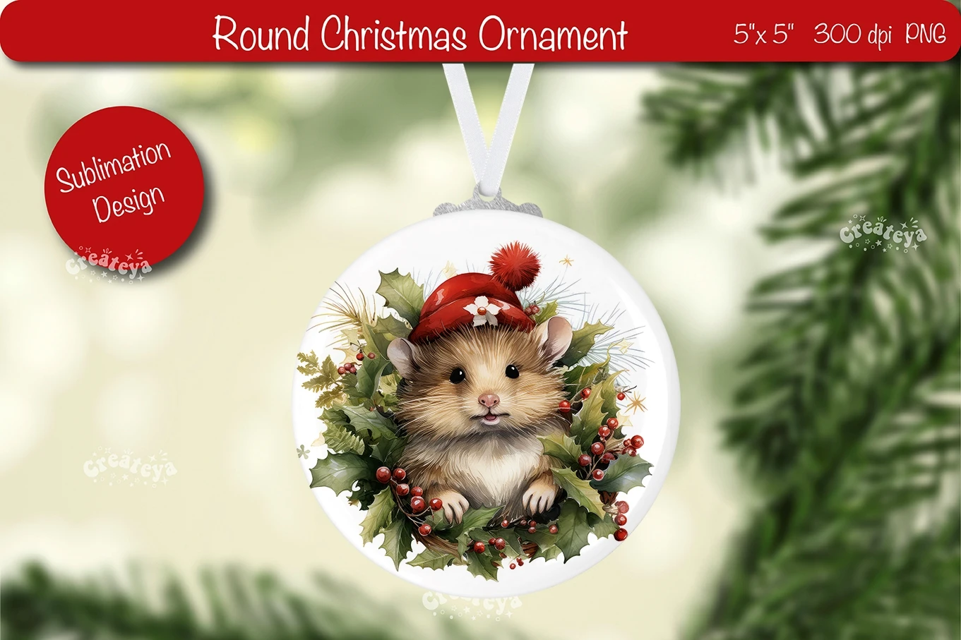 Round Christmas ornament sublimation with a cute Watercolor Christmas Baby Animal PNG. Cute Christmas Sublimation Round Ornament! Adorable animal, vibrant colors, and lasting memories. Perfect for your tree or as a delightful gift. Happy holidays!