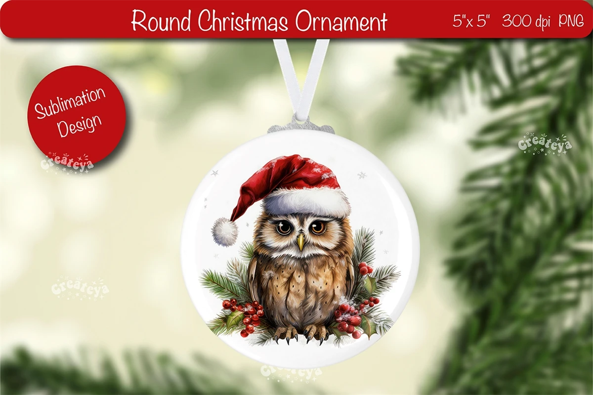 Round Christmas ornament sublimation with a cute Watercolor Christmas Baby Animal PNG. Cute Christmas Sublimation Round Ornament! Adorable animal, vibrant colors, and lasting memories. Perfect for your tree or as a delightful gift. Happy holidays!