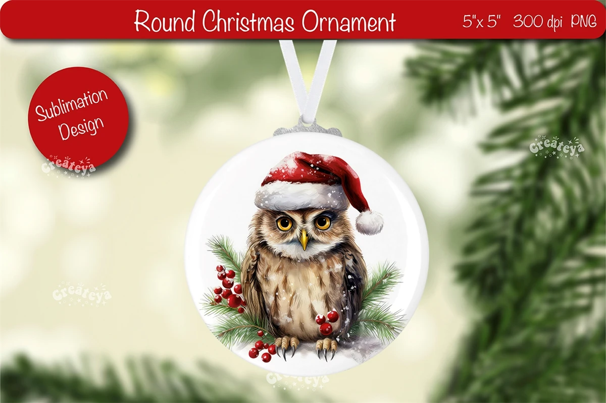 Round Christmas ornament sublimation with a cute Watercolor Christmas Baby Animal PNG. Cute Christmas Sublimation Round Ornament! Adorable animal, vibrant colors, and lasting memories. Perfect for your tree or as a delightful gift. Happy holidays!