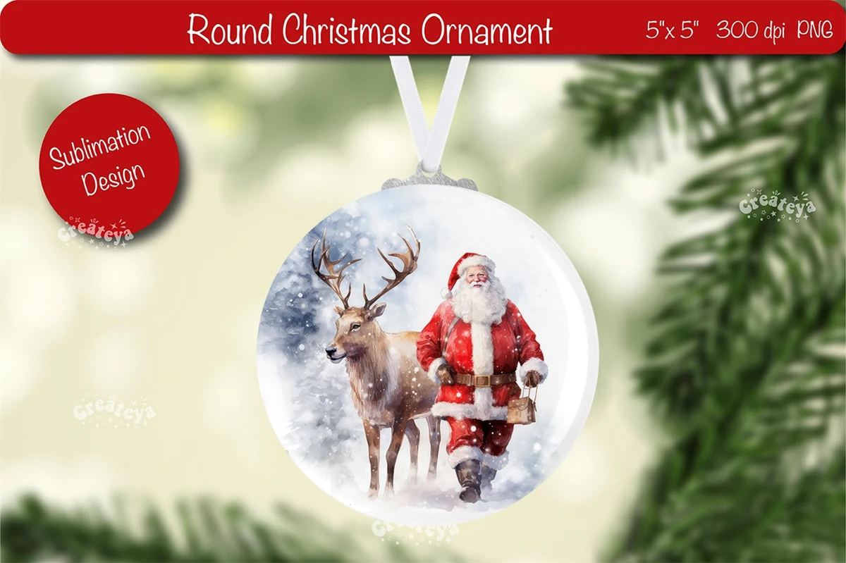 Round Christmas ornament sublimation with Watercolor Santa PNG. Cute Christmas Sublimation Round Ornament! Adorable animal, vibrant colors, and lasting memories. Perfect for your tree or as a delightful gift. Happy holidays!