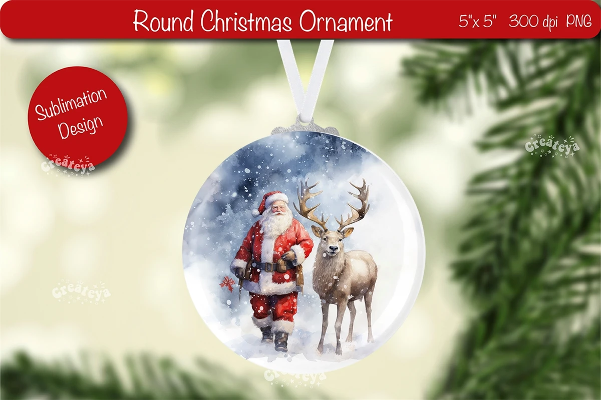 Round Christmas ornament sublimation with Watercolor Santa PNG. Cute Christmas Sublimation Round Ornament! Adorable animal, vibrant colors, and lasting memories. Perfect for your tree or as a delightful gift. Happy holidays!