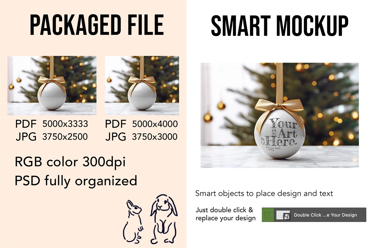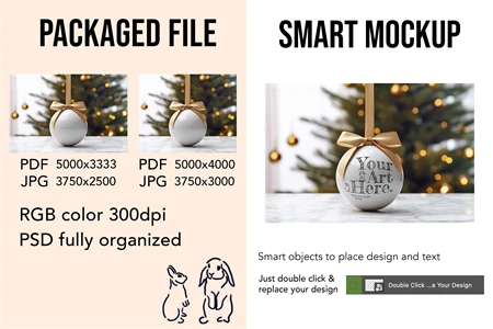 Christmas Ornament mockup decor graphic with Photoshop (PSD) template for drawing design, pattern, svg, art and graphic designs.