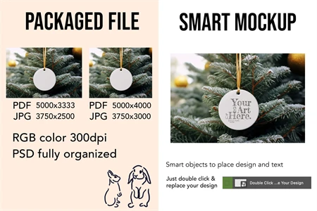 Christmas Ornament mockup decor graphic with Photoshop (PSD) template for drawing design, pattern, svg, art and graphic designs.