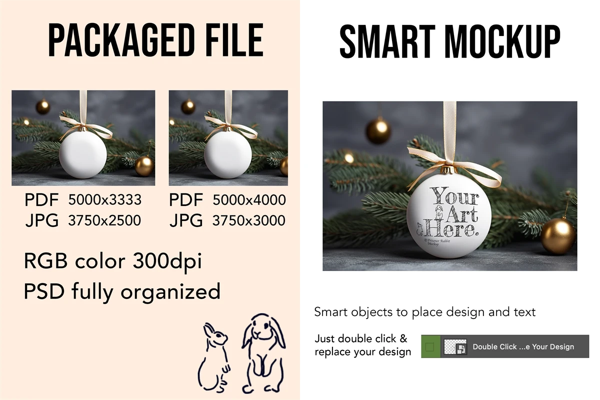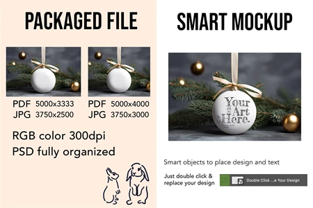 Christmas Ornament mockup decor graphic with Photoshop (PSD) template for drawing design, pattern, svg, art and graphic designs.