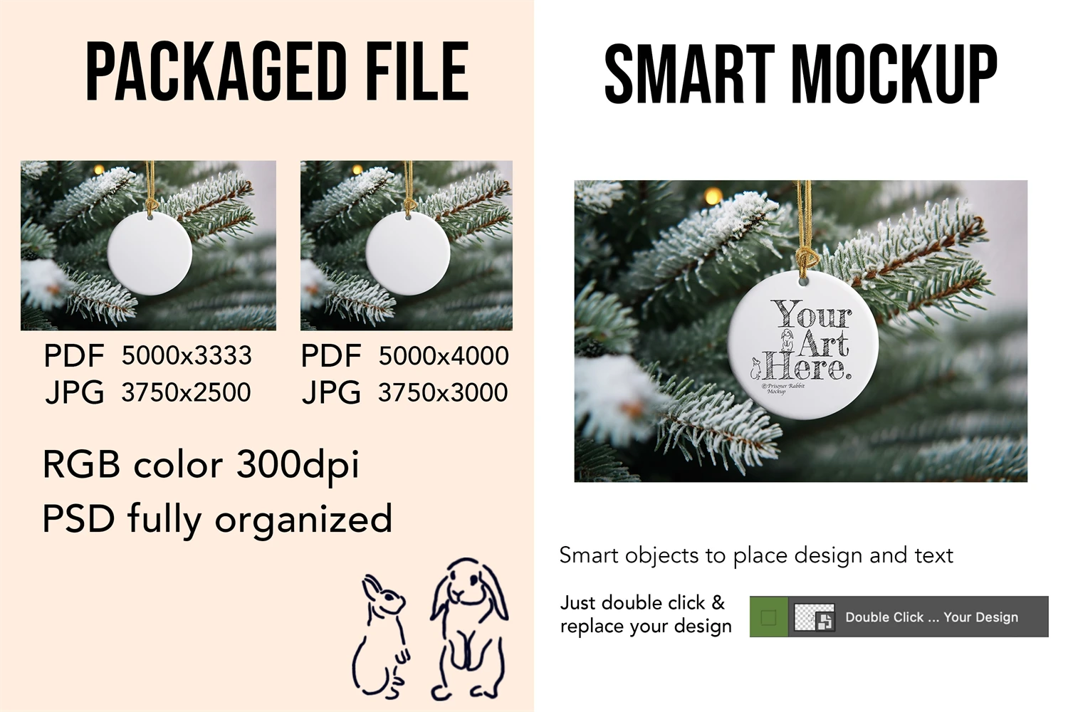 Christmas Ornament mockup decor graphic with Photoshop (PSD) template for drawing design, pattern, svg, art and graphic designs.