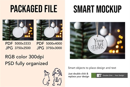 Christmas Ornament mockup decor graphic with Photoshop (PSD) template for drawing design, pattern, svg, art and graphic designs.