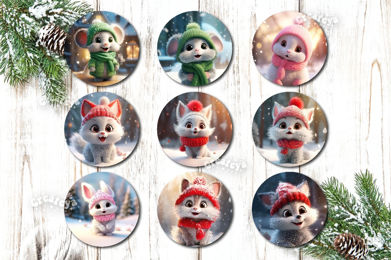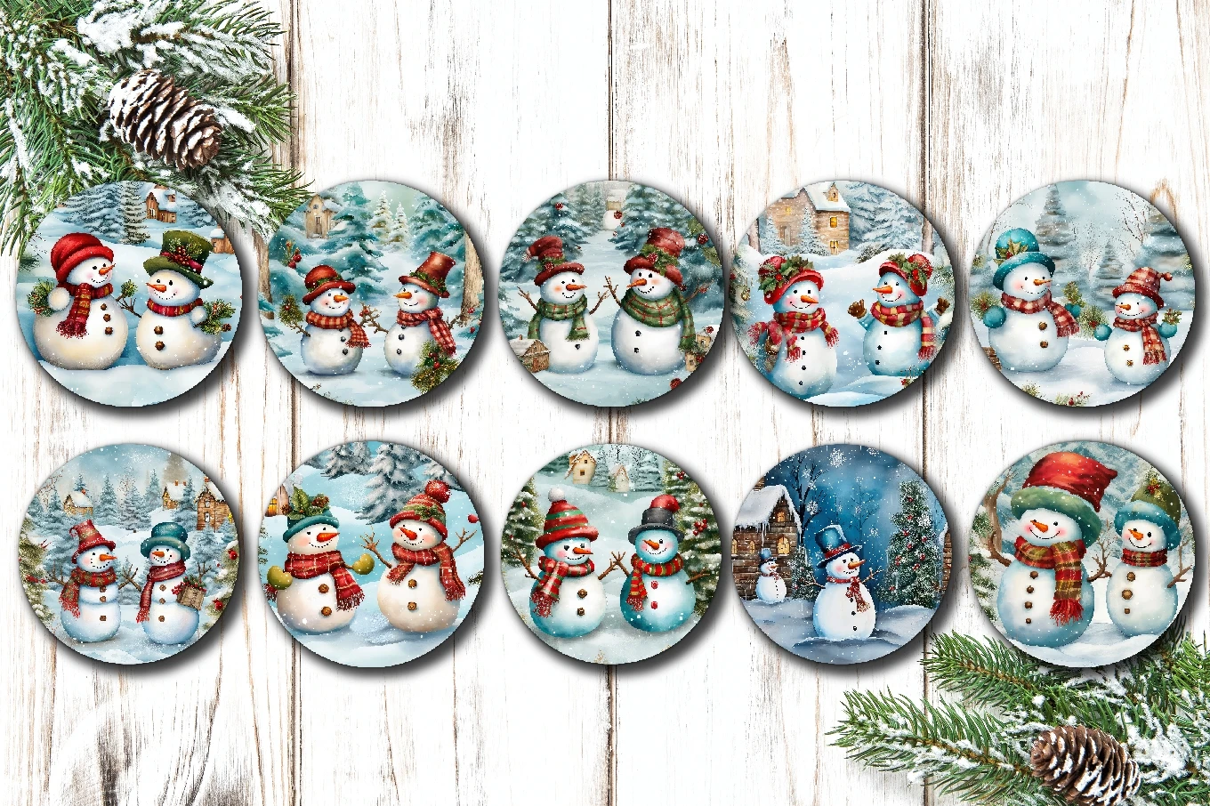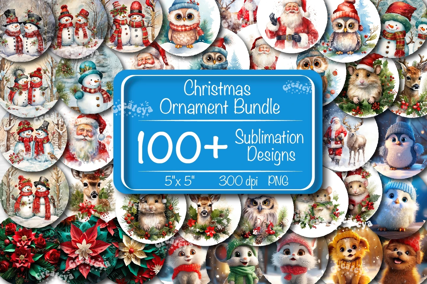 Round Christmas ornament sublimation Bundle contains 106 designs with cute Snowman and Baby Animals and 3D Christmas Flowers PNG. Sublimation Round Ornament! Adorable illustration, vibrant colors, and lasting memories. Perfect for your tree or as a delightful gift. Happy holidays!