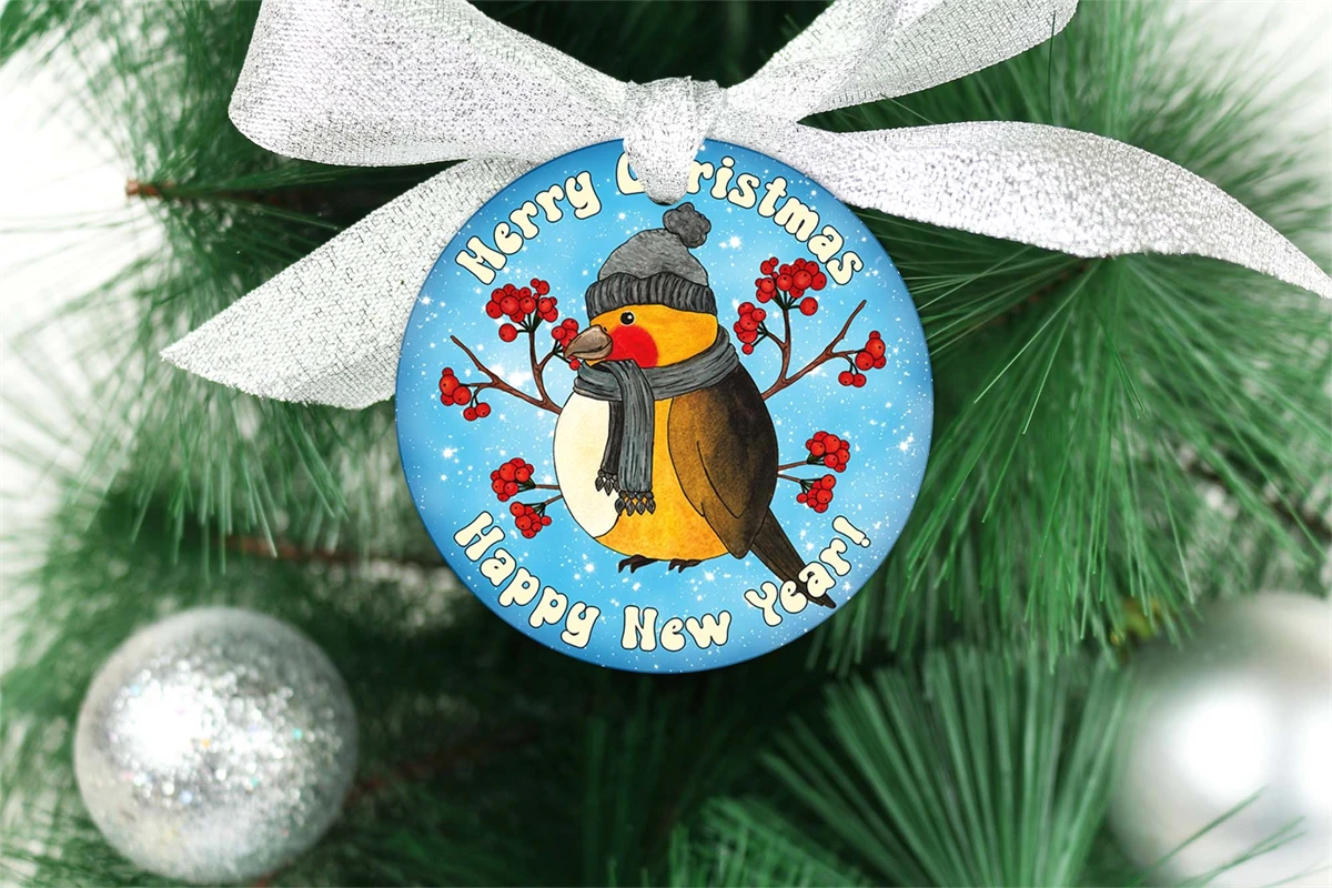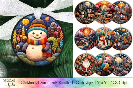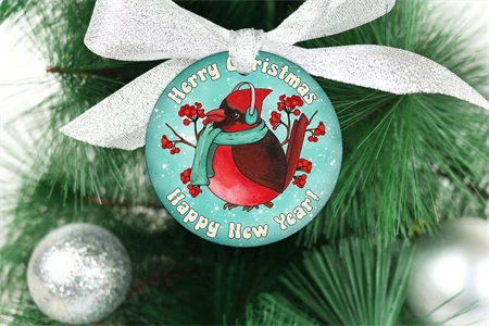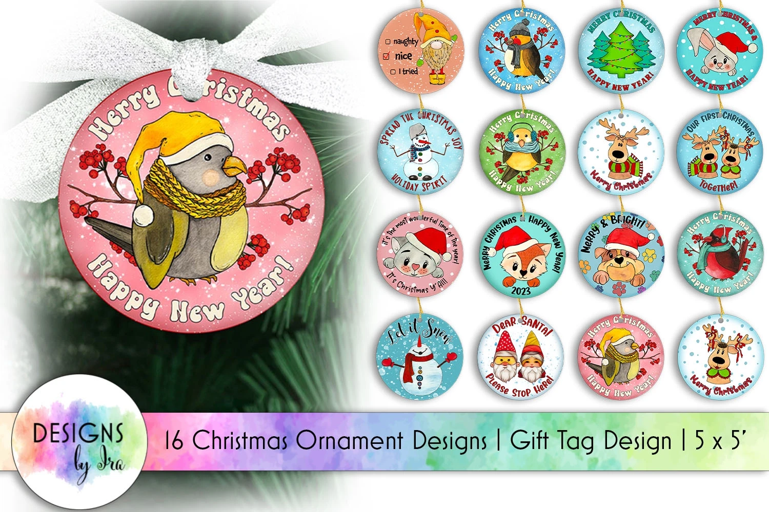 Christmas Ornaments with cute chickadee and cardinal birds, cute baby animals and gnomes.