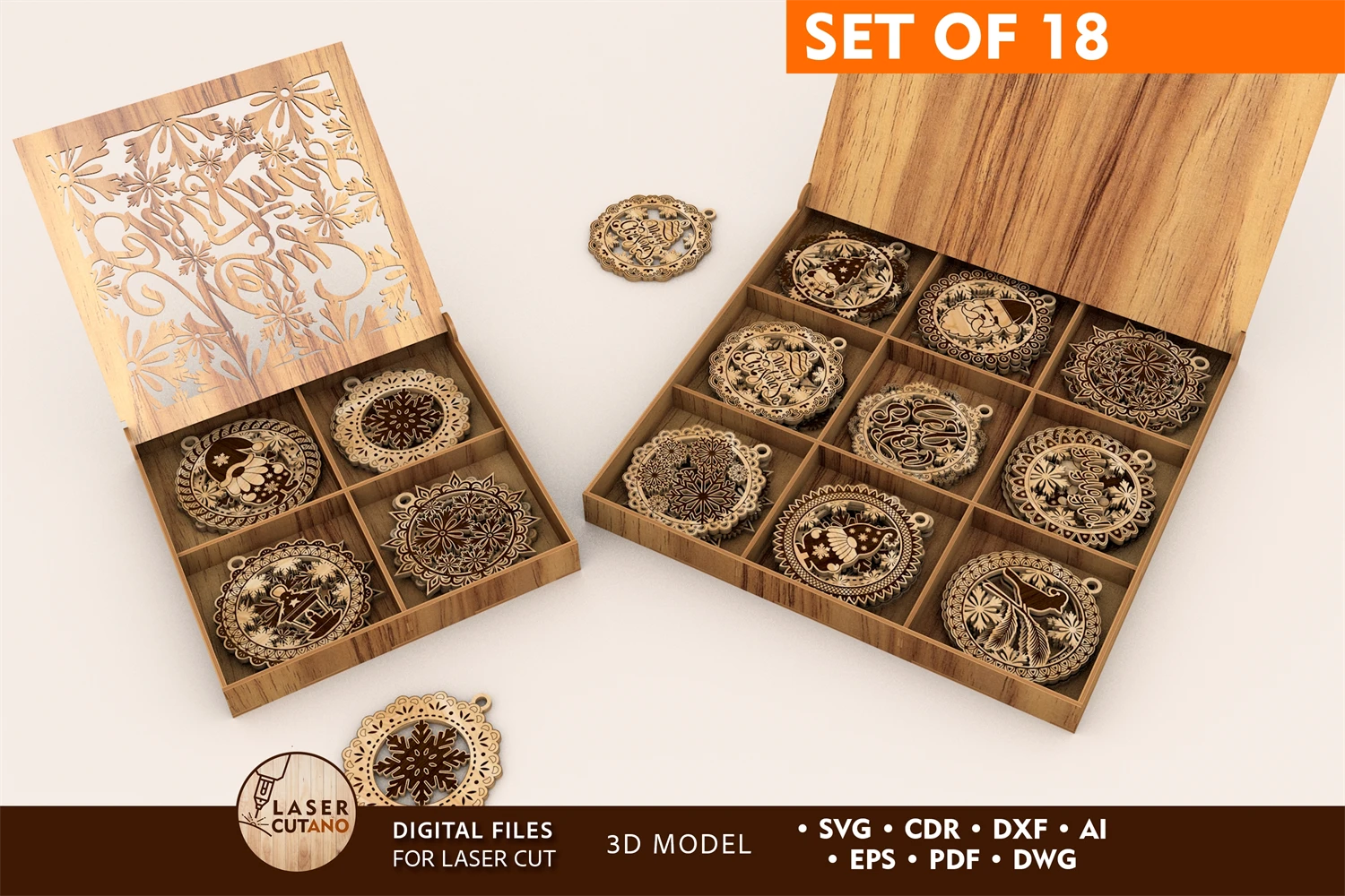 CHRISTMAS ORNAMENTS Digital multilayer layout files are specially prepared for the laser cut, CNC router machine and other cutting machines.