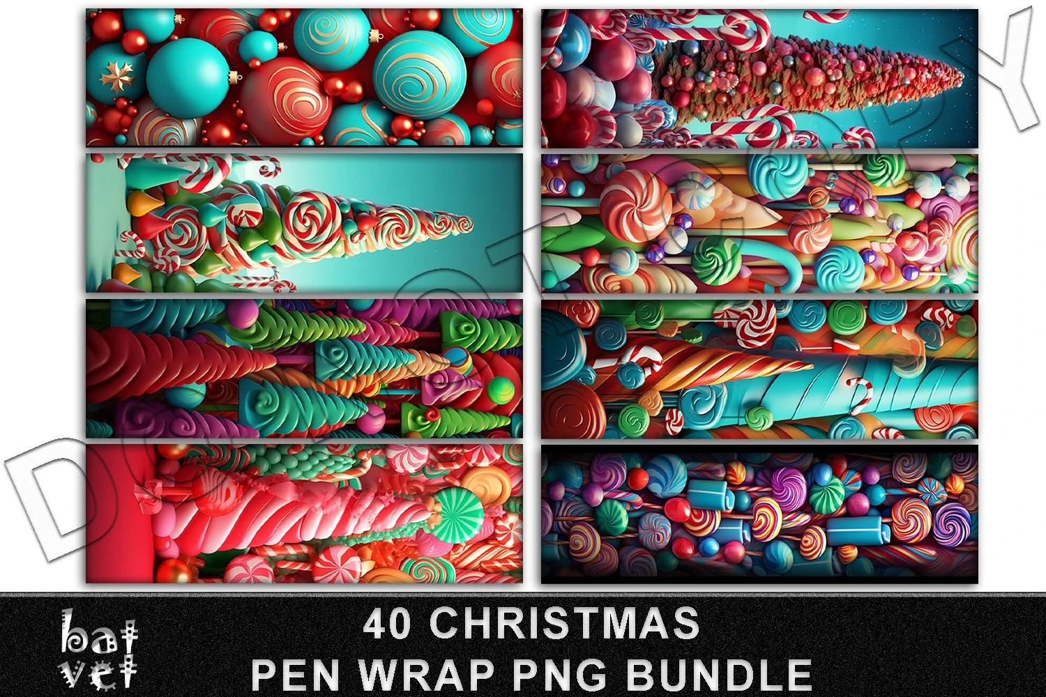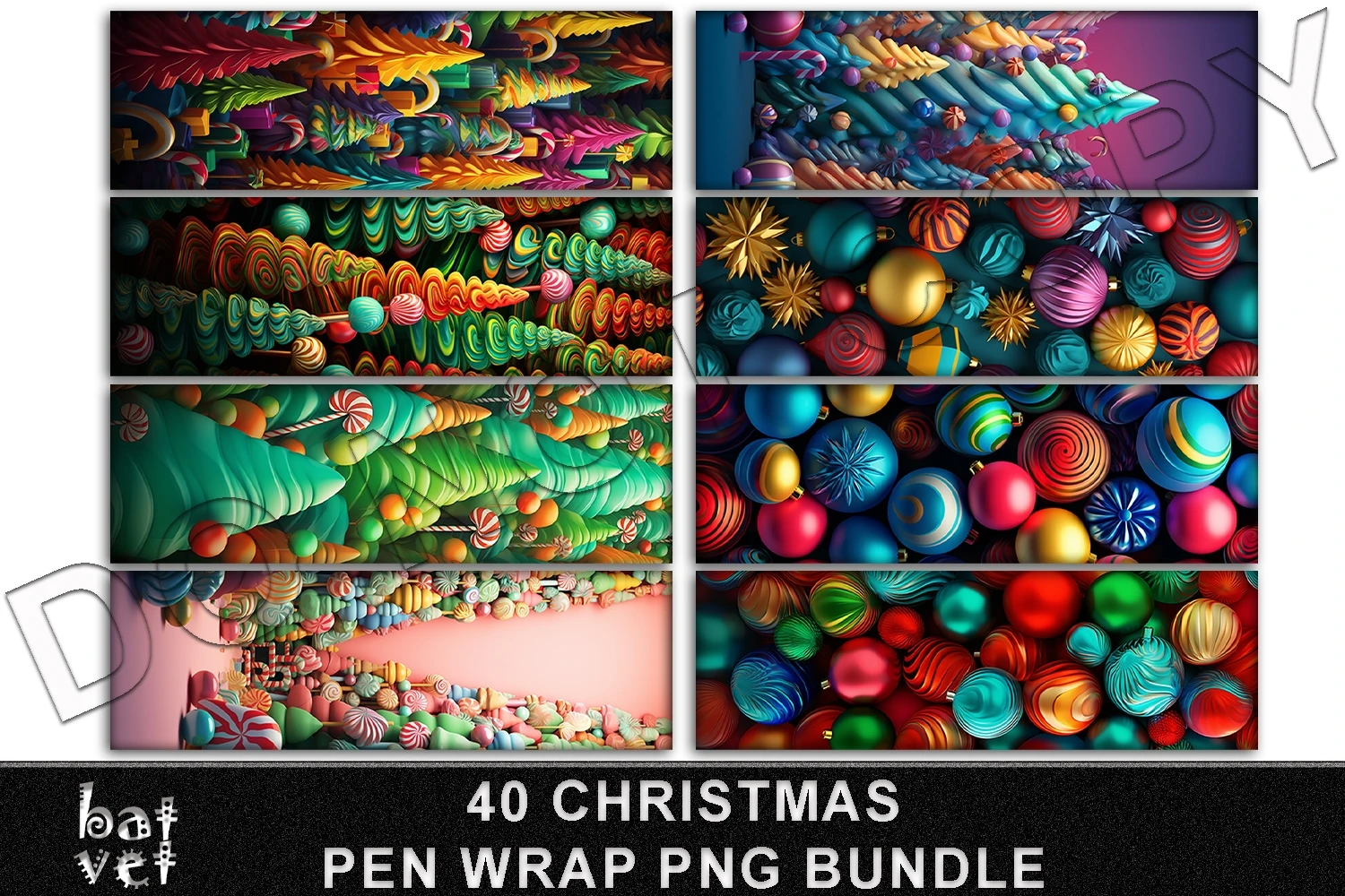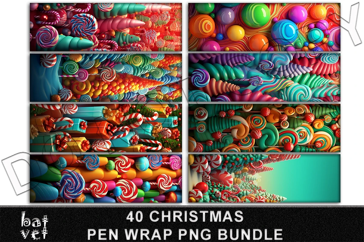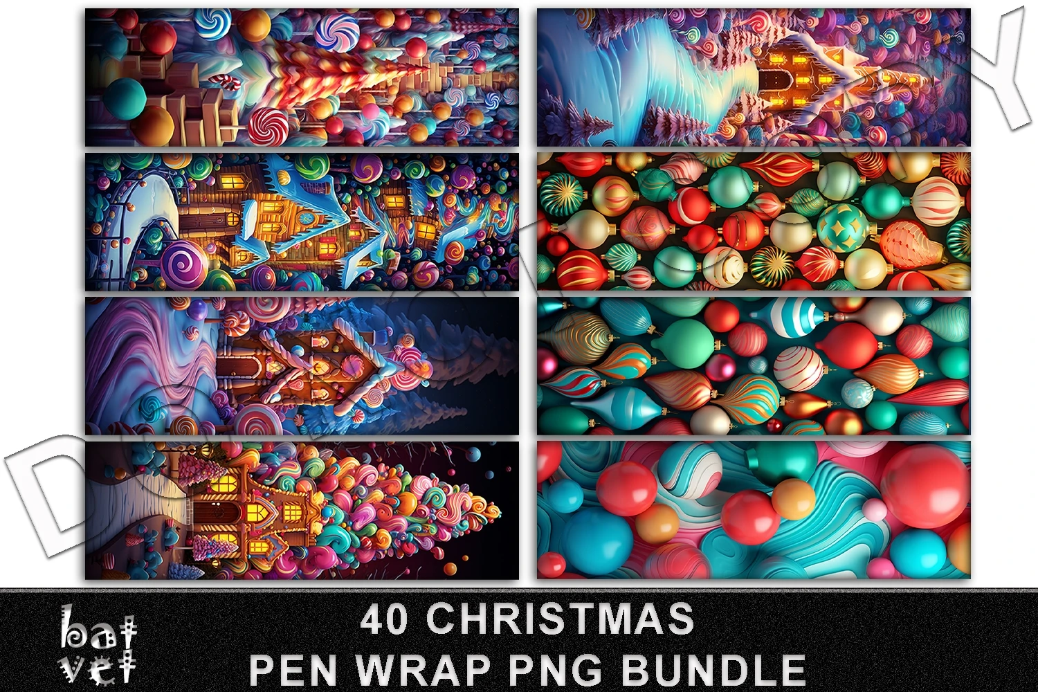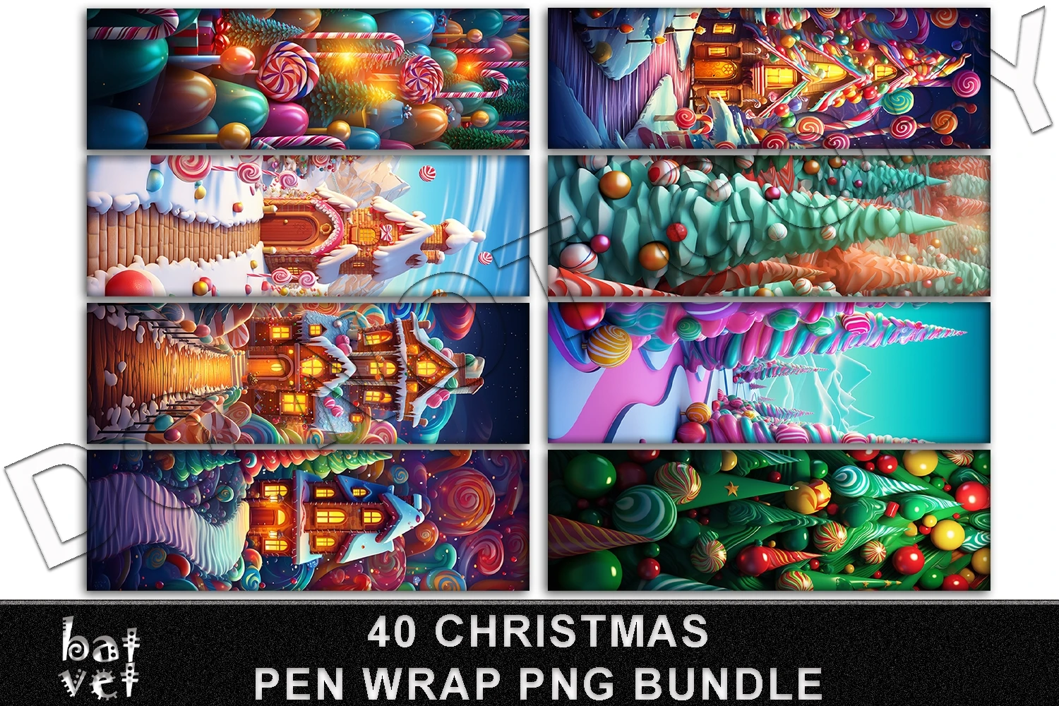 Christmas Pen Wrap Bundle / Puffy Christmas Pen Wrap Sublimation / 40 PNG Designs