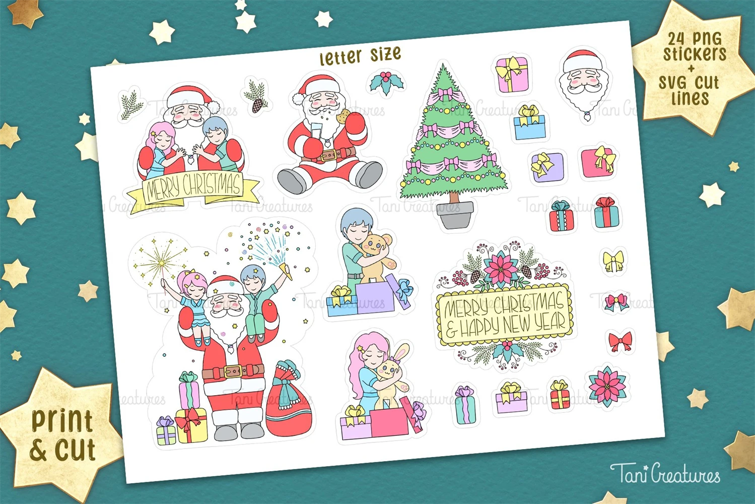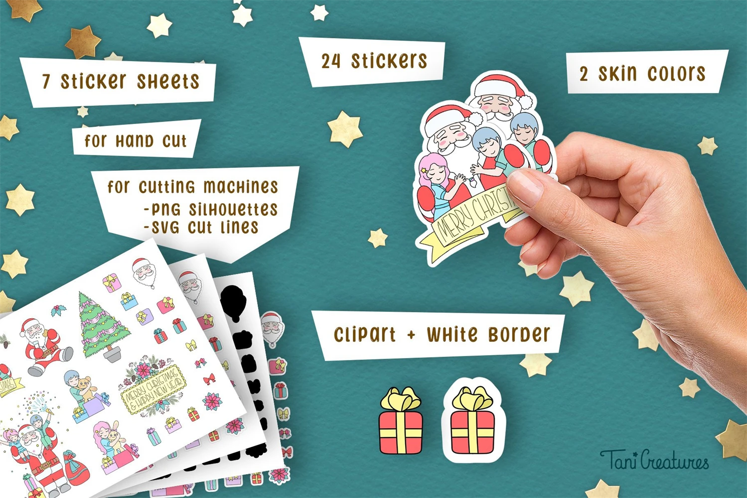 Cutest Christmas Sticker Sheet - Santa Claus gives Christmas presents to a little girl and a little boy!