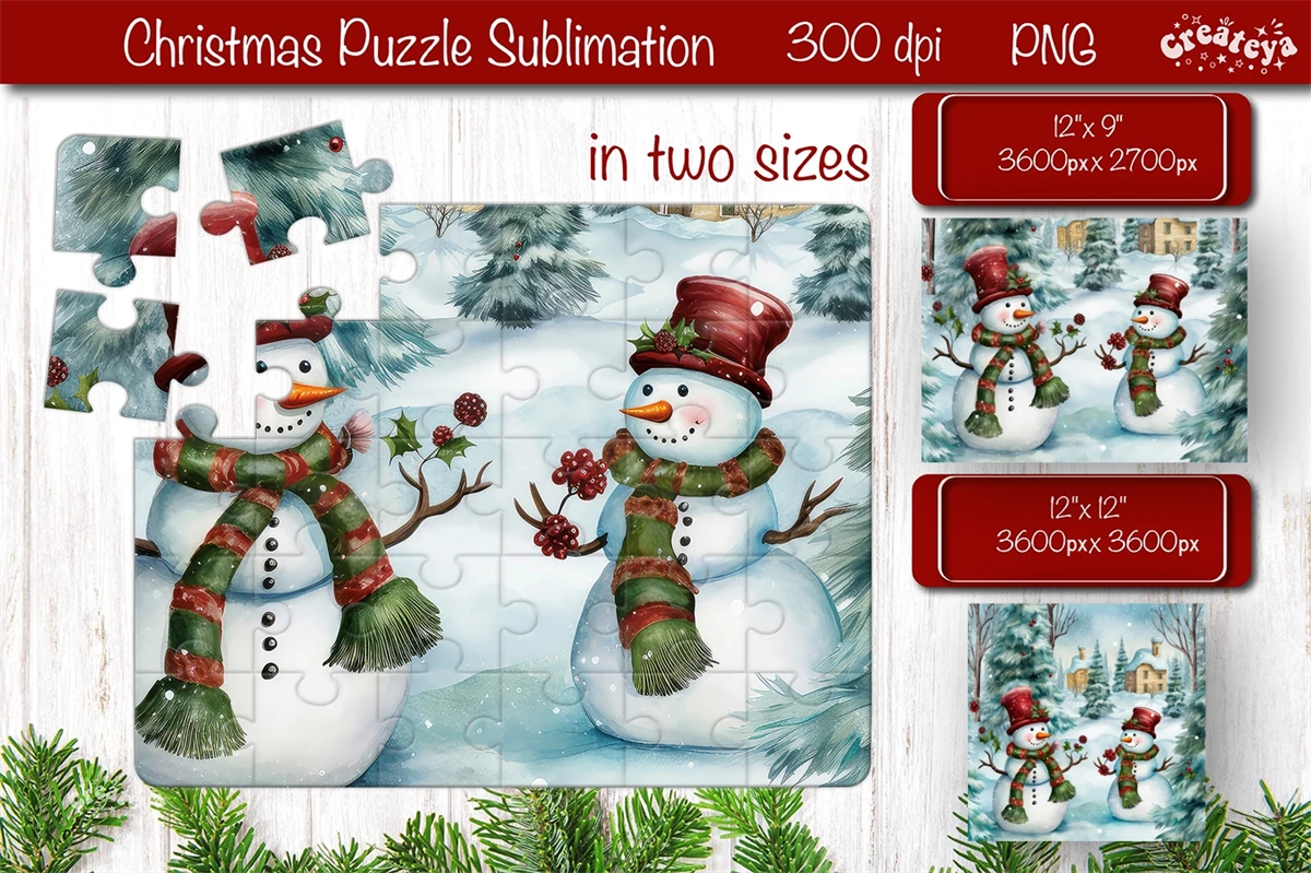 Cute Christmas Sublimation Puzzle! Adorable snowmen, vibrant colors, and lasting memories. Happy holidays!