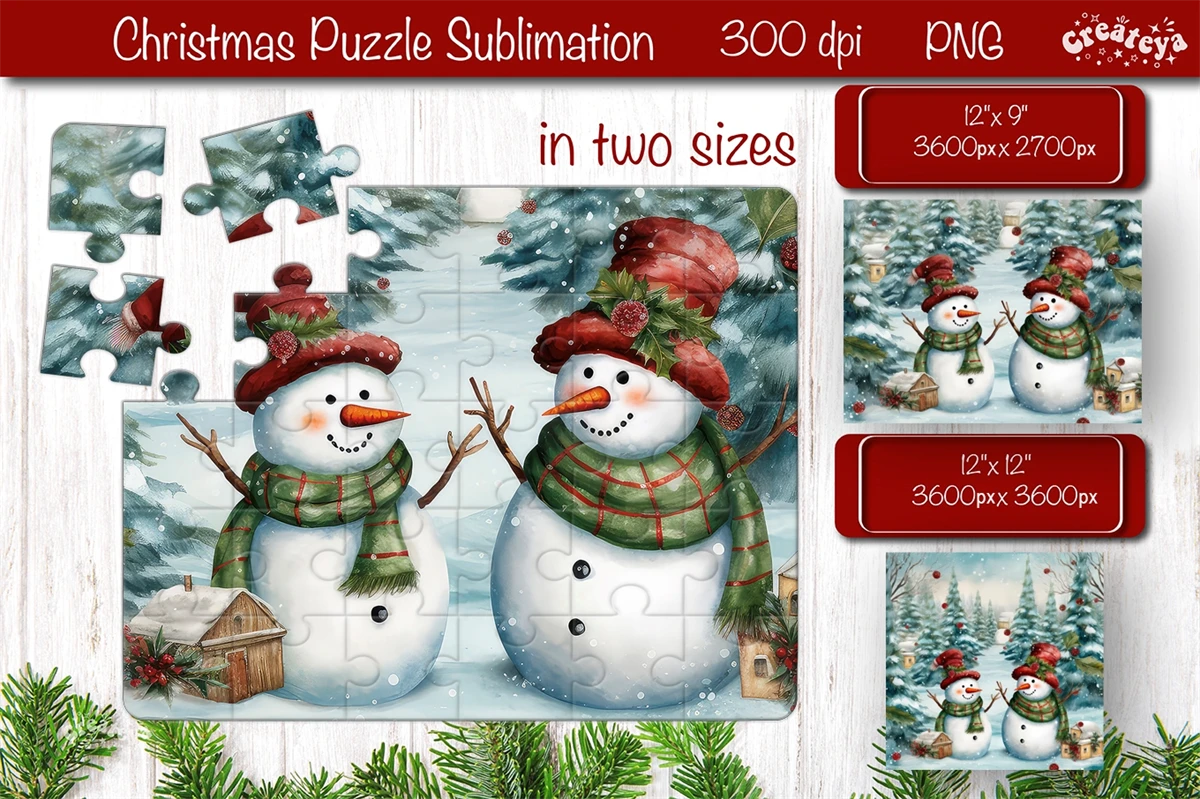 Cute Christmas Sublimation Puzzle! Adorable snowmen, vibrant colors, and lasting memories. Happy holidays!