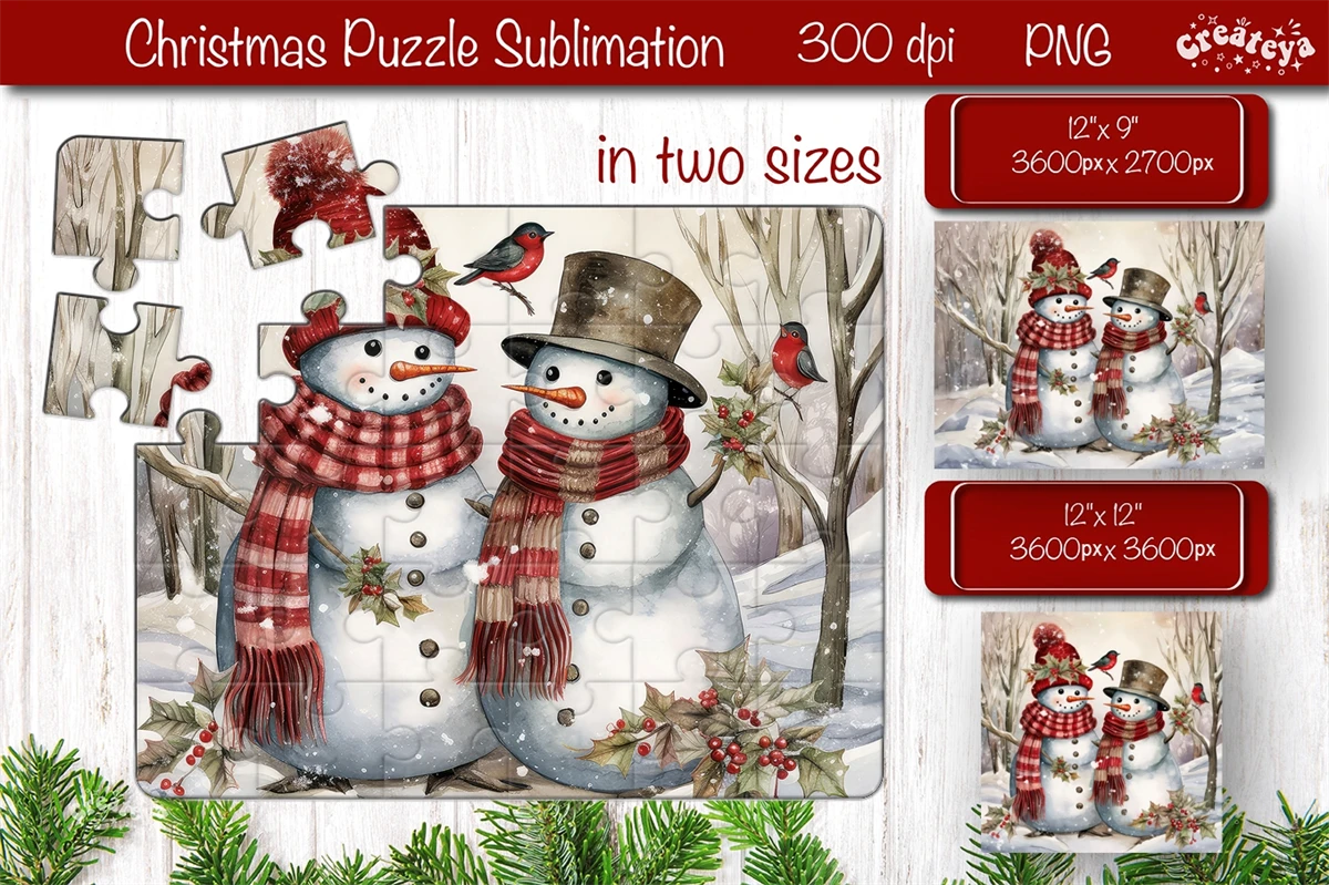 Cute Christmas Sublimation Puzzle! Adorable snowmen, vibrant colors, and lasting memories. Happy holidays!