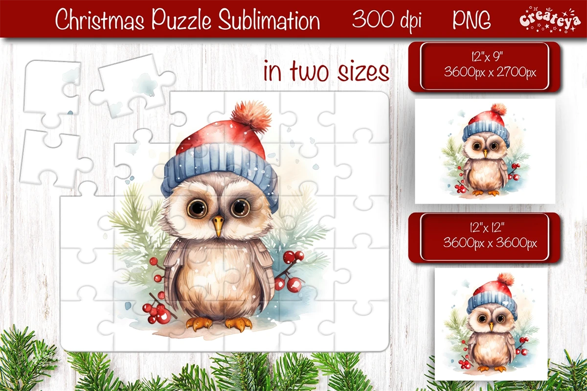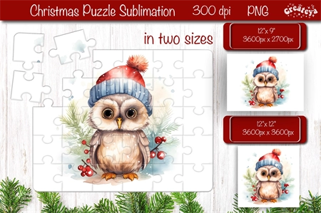 Christmas Puzzle PNG sublimation with cute Watercolor Christmas Owl PNG.