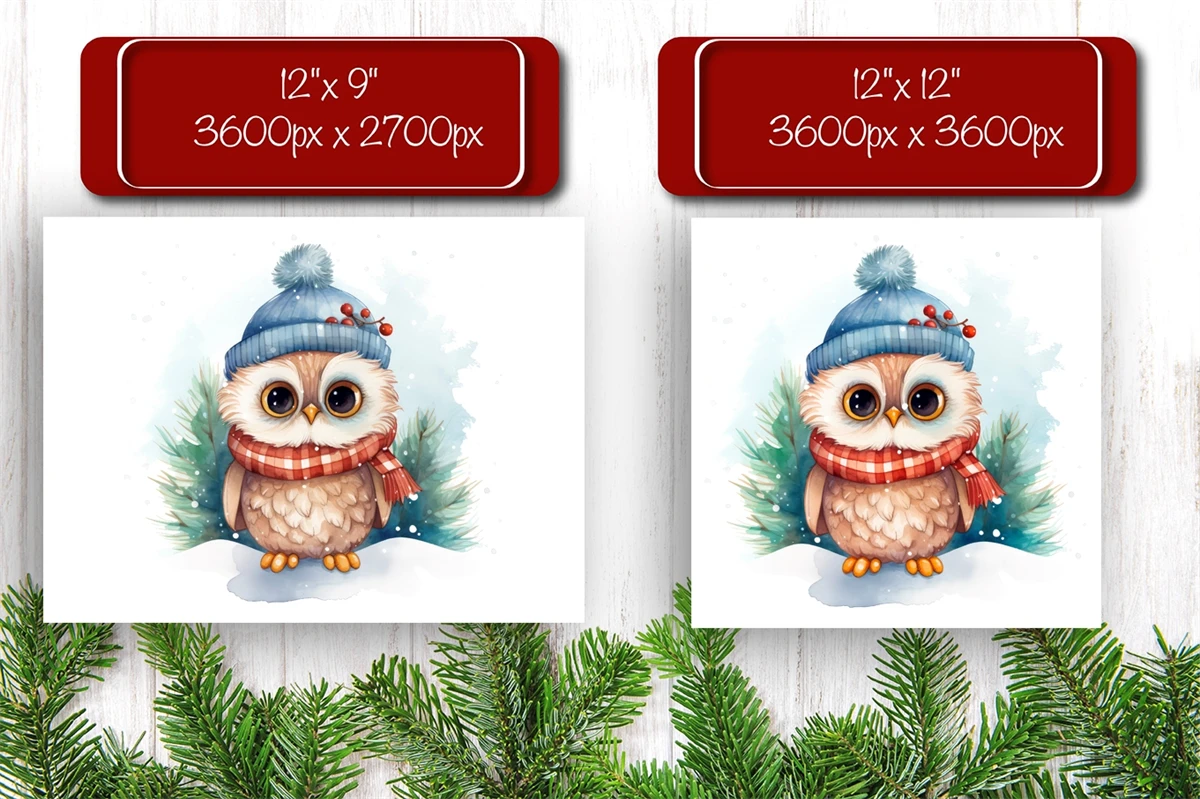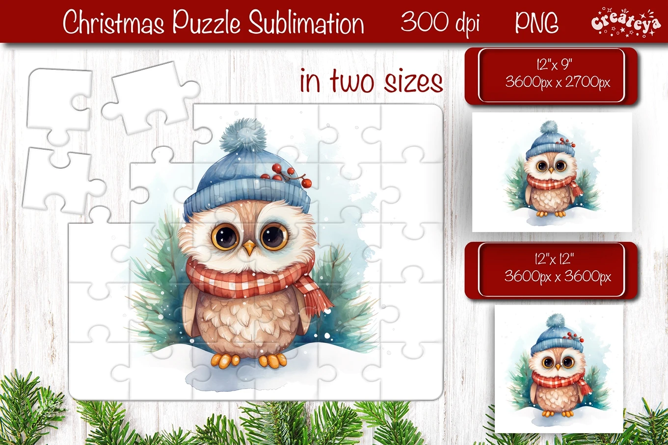 Christmas Puzzle PNG sublimation with cute Watercolor Christmas Owl PNG.