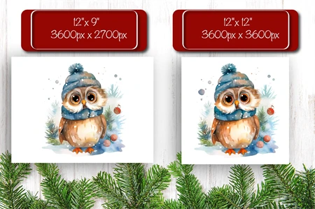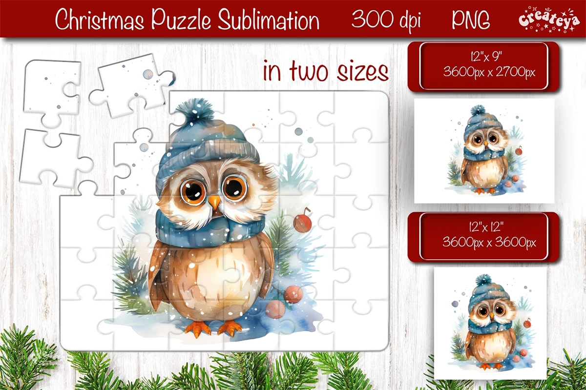 Christmas Puzzle PNG sublimation with cute Watercolor Christmas Owl PNG.