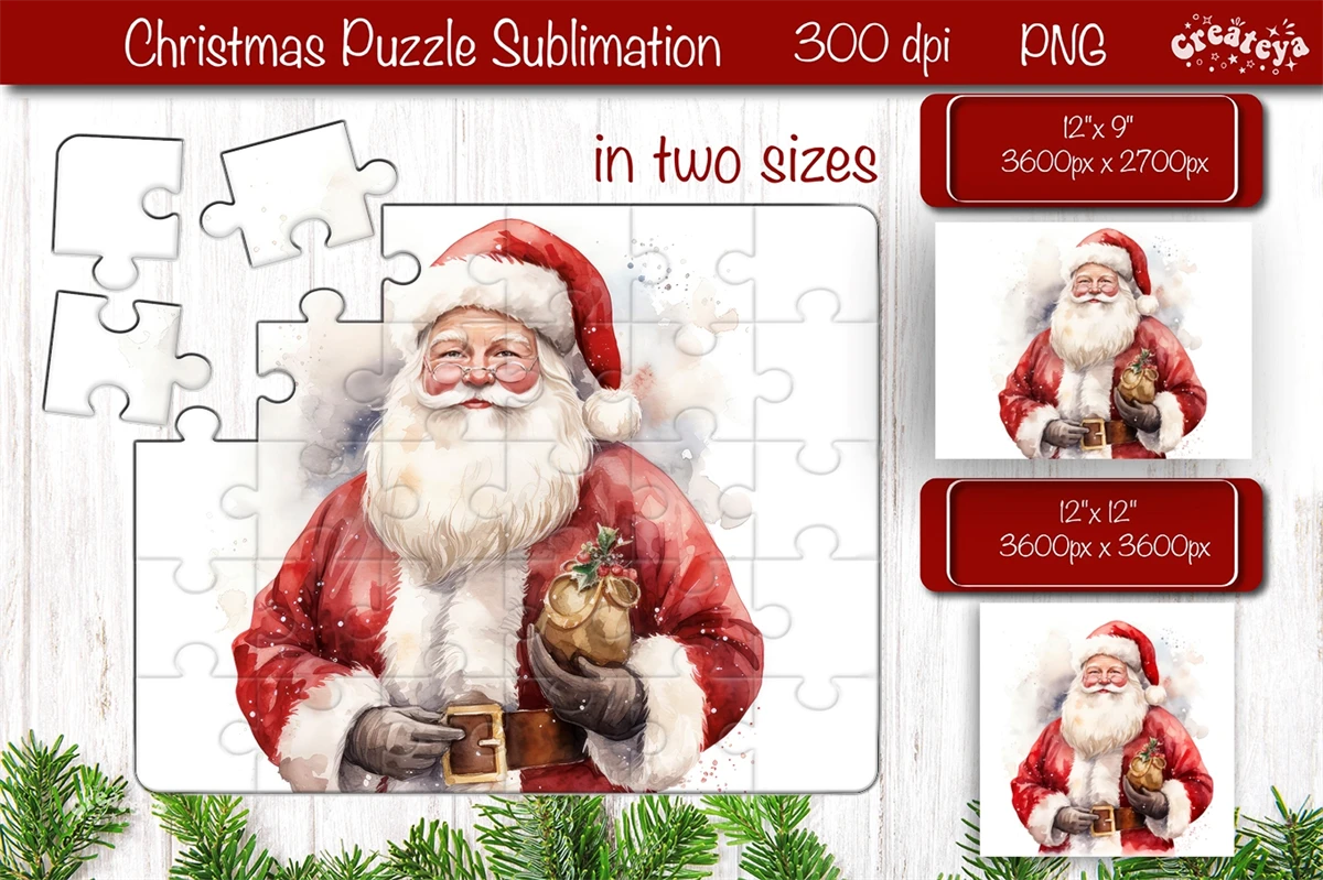 Christmas Puzzle PNG sublimation with cute Watercolor Santa PNG.