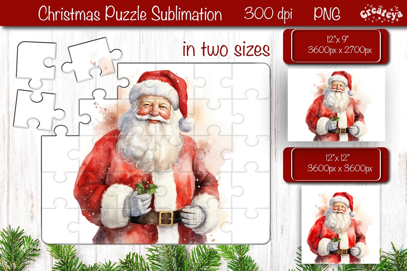 Christmas Puzzle PNG sublimation with cute Watercolor Santa PNG.