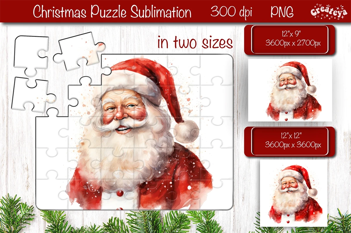 Christmas Puzzle PNG sublimation with cute Watercolor Santa PNG.