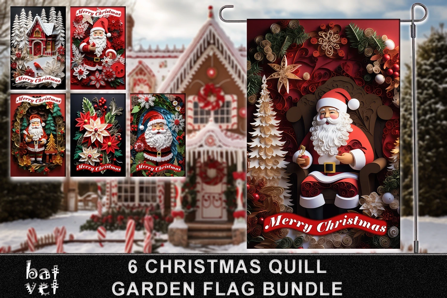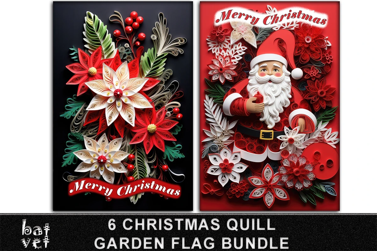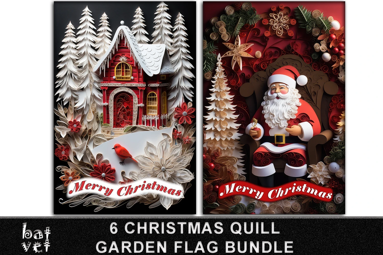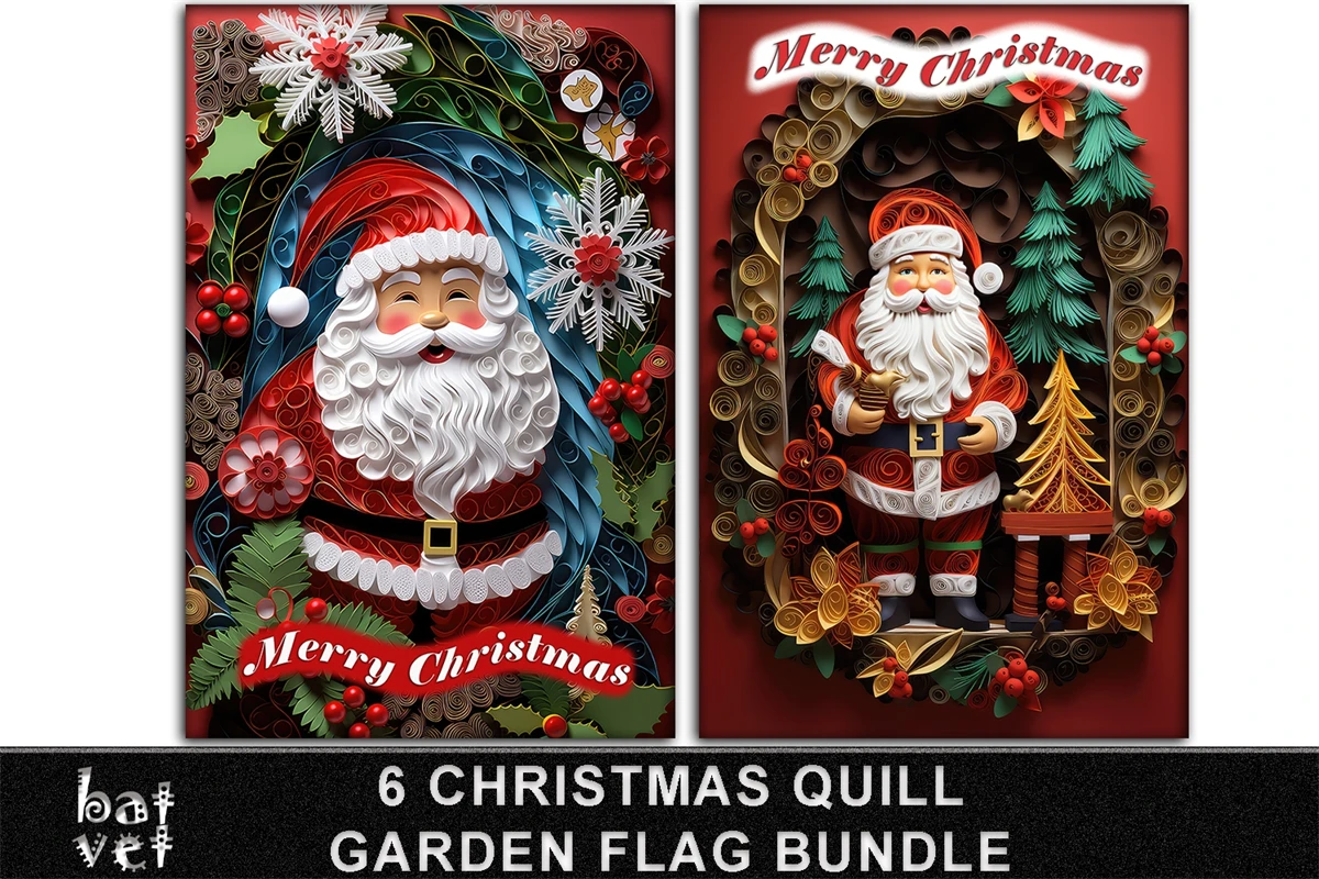 Garden Decor 3D Welcome Flag, Christmas Tree, Santa, Quill Papercut Sublimation Garden Flag Design.