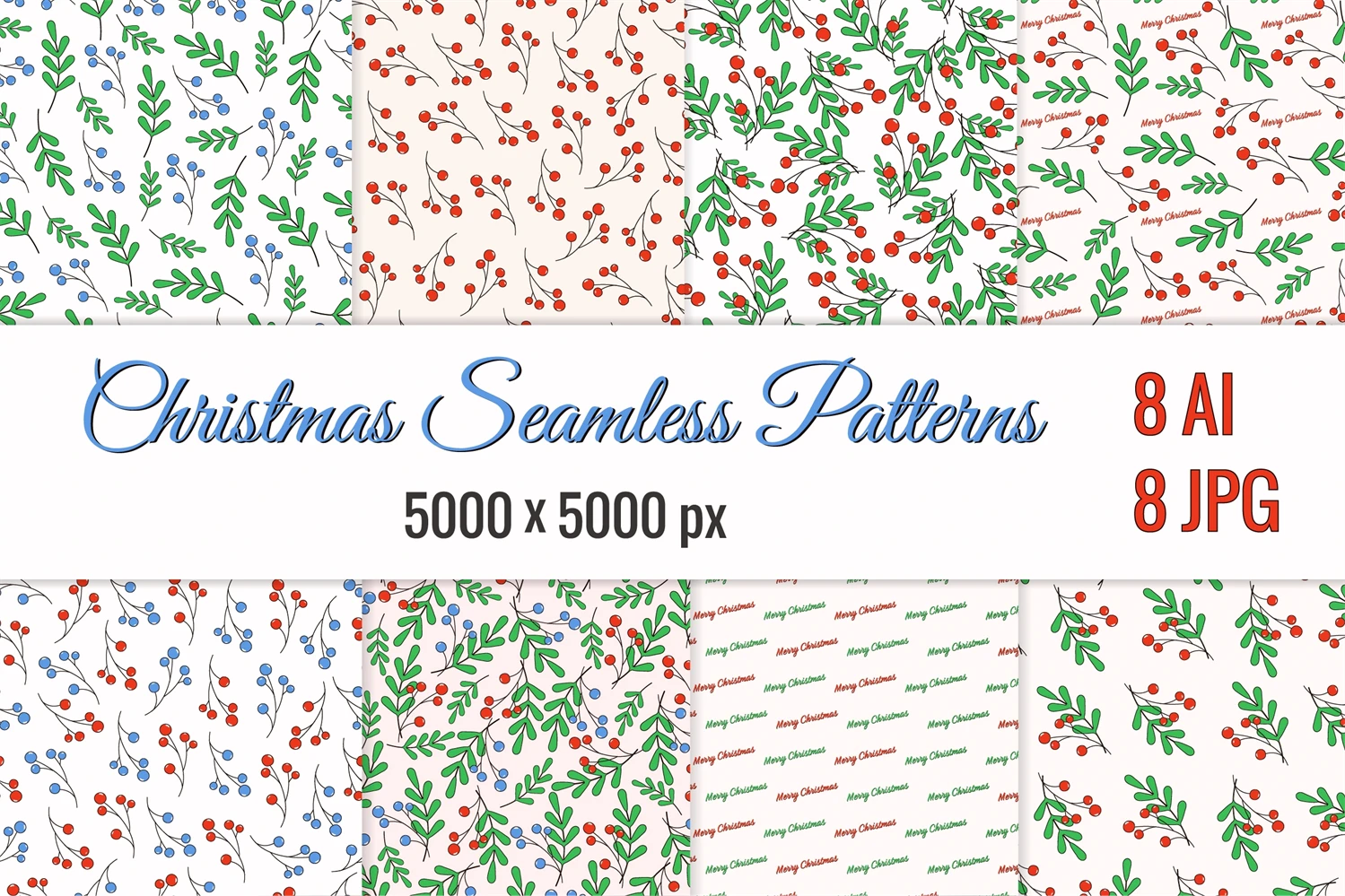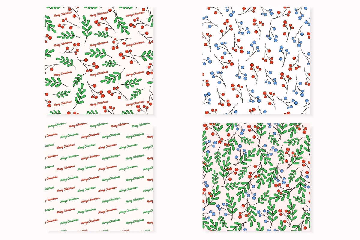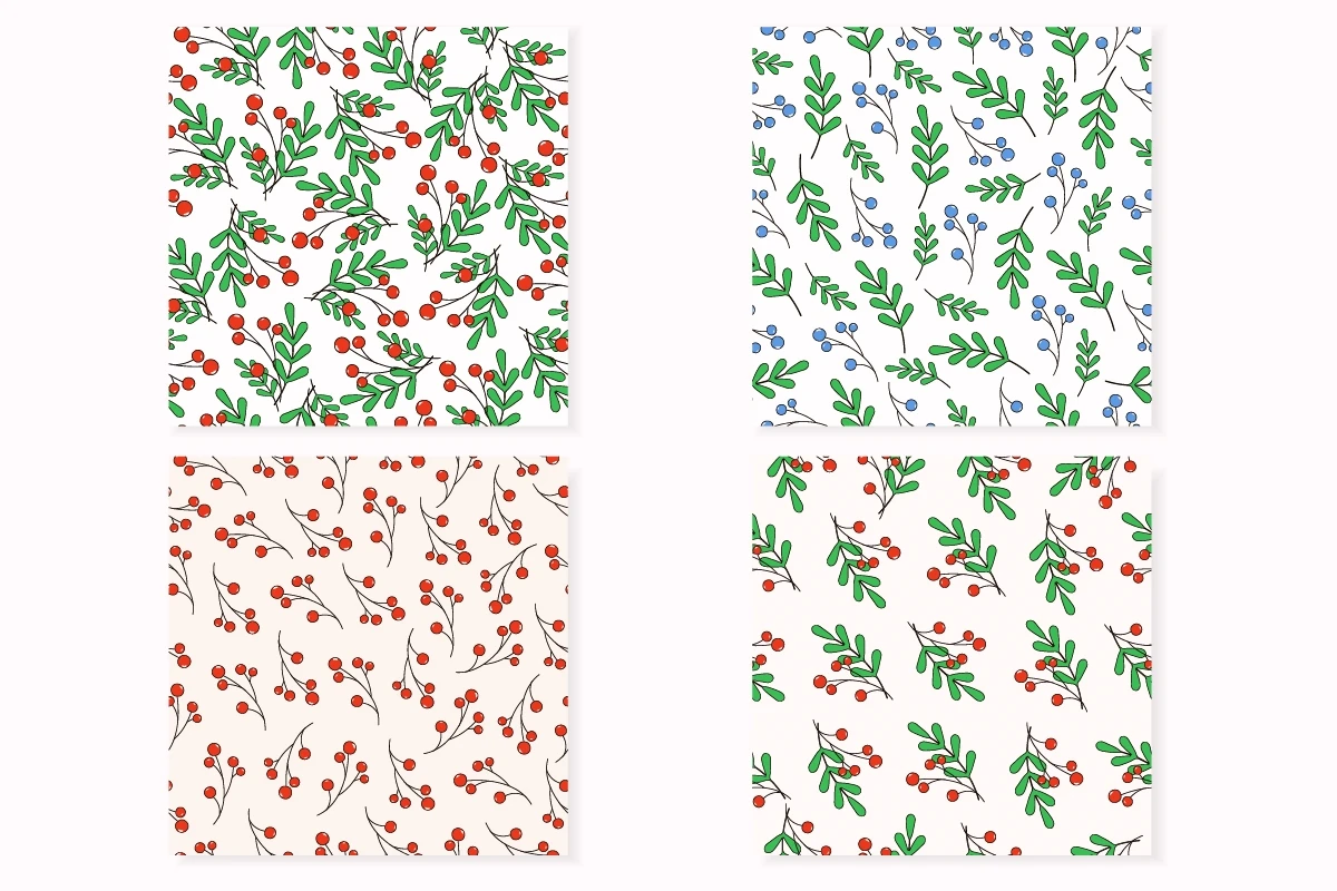 Christmas Seamless Digital Patterns Set.Winter set of patterns.Vector seamless pattern with rowan berries.Christmas pattern with rowan branches.Autumn set of patterns.Thanksgiving Day.Seamless pattern for Merry Christmas with rowan.Harvest Day.Vector illustration.